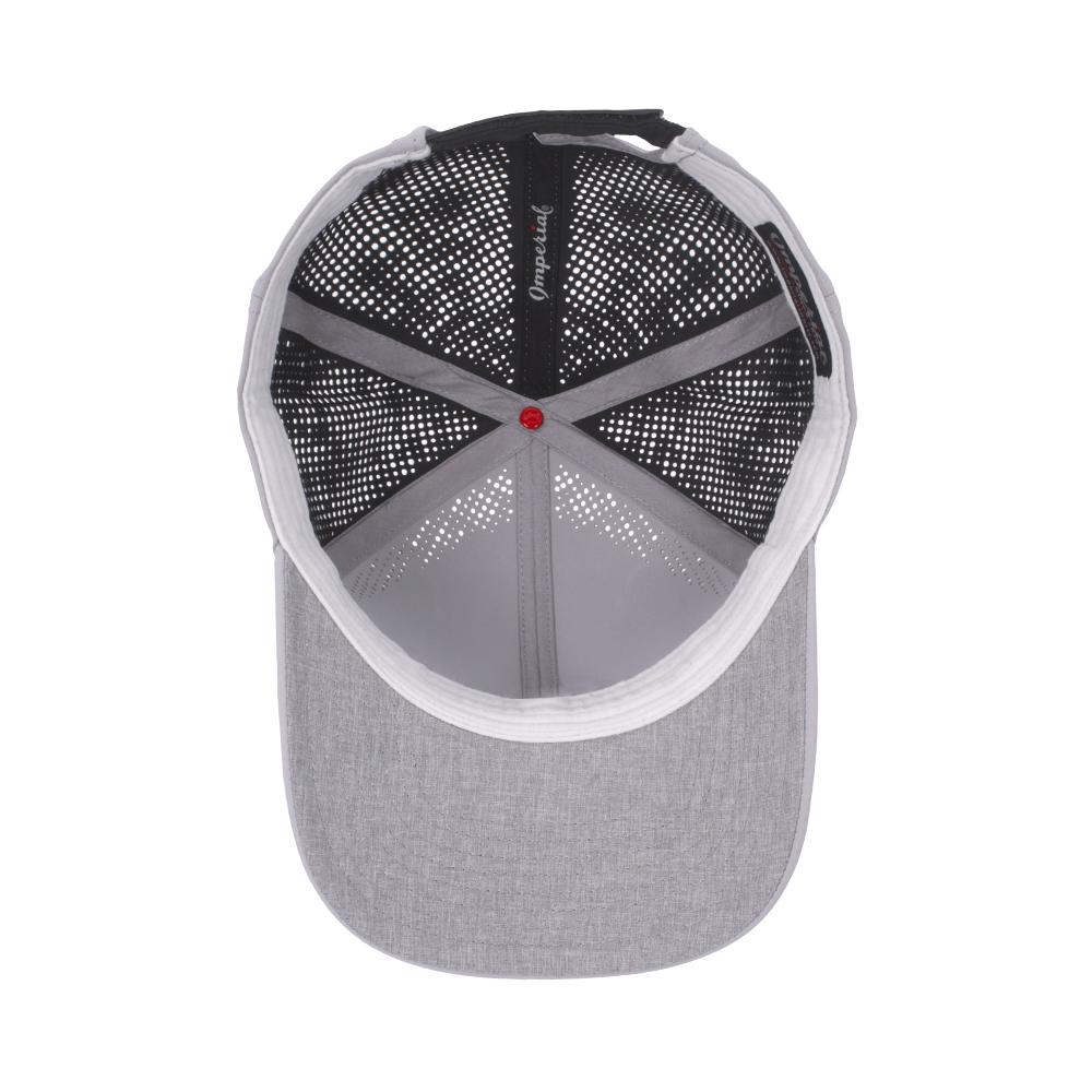 The Imperial Alpha Cap features breathable fabric, perforated panels, and a structured design for maximum comfort and ventilation. The NuYarn® sweatband and reflective details add functional flair, while the curved visor and Heather Charcoal under-visor provide sun protection. It's the perfect hat for athletes seeking both performance and style.
