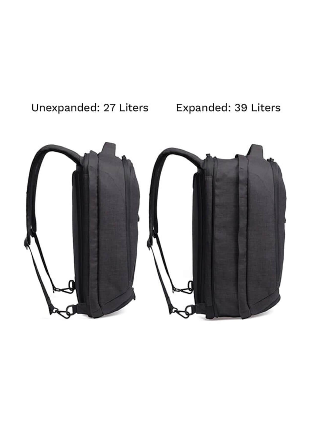 Travel made easy! This versatile bag features a padded side-zip pocket for your 15" laptop and a spacious main compartment with organization pockets, a fleece-lined tablet sleeve, and a handy key leash. The patent-pending expandable packing compartment holds 2 to 3 changes of clothes, perfect for quick trips, and meets carry-on requirements while fitting under most seats. With a hidden water bottle pocket, trolley sleeve, and durable water-resistant fabric, it’s built for convenience and comfort—your perfect travel companion!