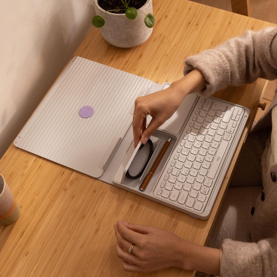Transform any spot in your home into a workspace with the Logitech Casa Pop-Up Desk, your go-to kit for productive comfort. Inside its sleek, book-style case, you’ll find a wireless keyboard, touchpad, and a laptop stand, all designed to keep you working smart. When the day is done, simply fold it away for a tidy, clutter-free space. With its thoughtful use of recycled plastics, Casa is as kind to the planet as it is to your workflow.