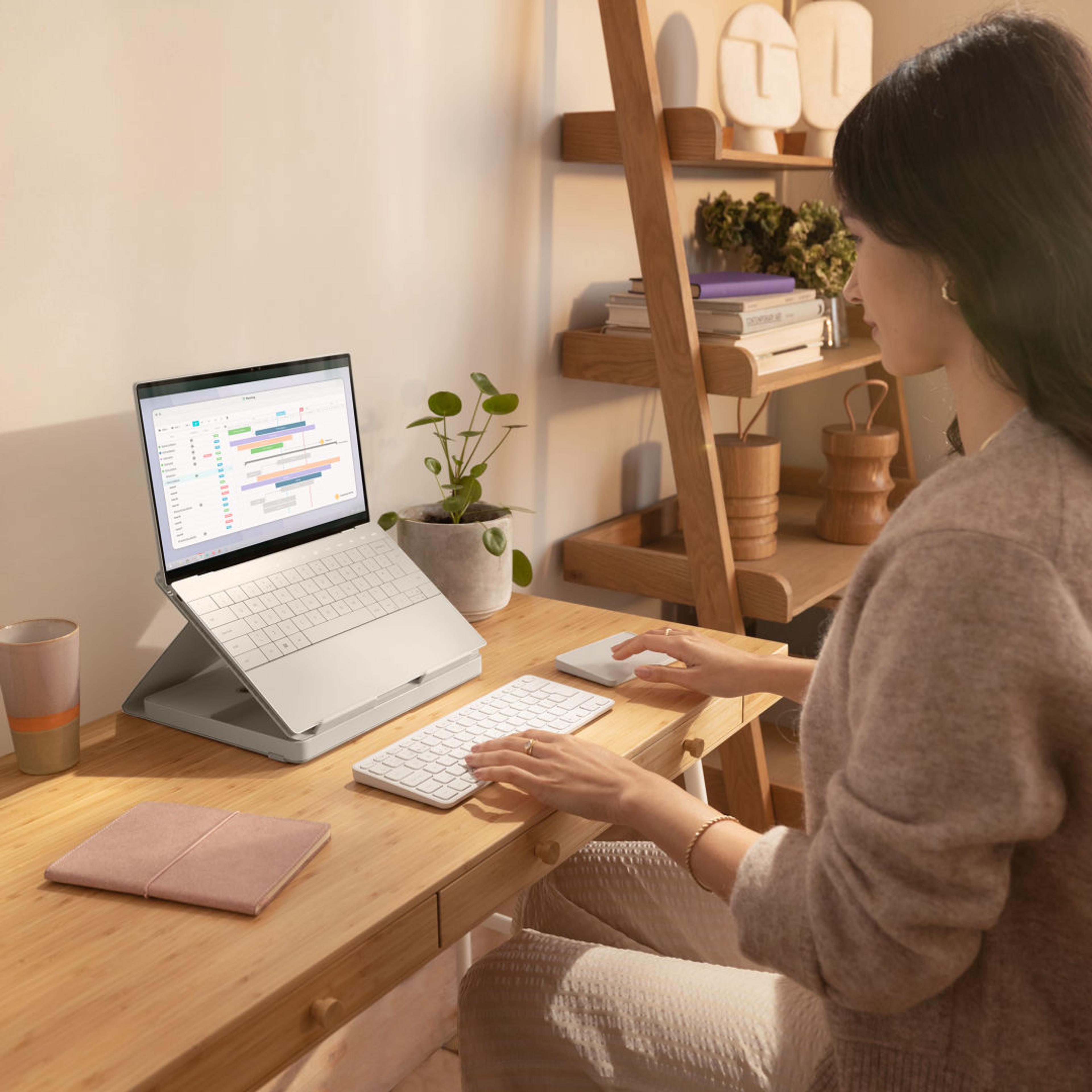 Transform any spot in your home into a workspace with the Logitech Casa Pop-Up Desk, your go-to kit for productive comfort. Inside its sleek, book-style case, you’ll find a wireless keyboard, touchpad, and a laptop stand, all designed to keep you working smart. When the day is done, simply fold it away for a tidy, clutter-free space. With its thoughtful use of recycled plastics, Casa is as kind to the planet as it is to your workflow.