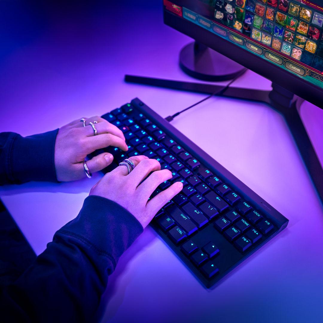 Elevate your gameplay with the Logitech Lightspeed Gaming Keyboard, where style meets performance. Its slim, low-profile design doesn’t just look sharp, it feels great in action, too. Built tough for those high-energy moments, this keyboard is ready to keep up with your every move. With finely tuned engineering behind each key, you’ll experience gaming on a whole new level of precision and excitement.