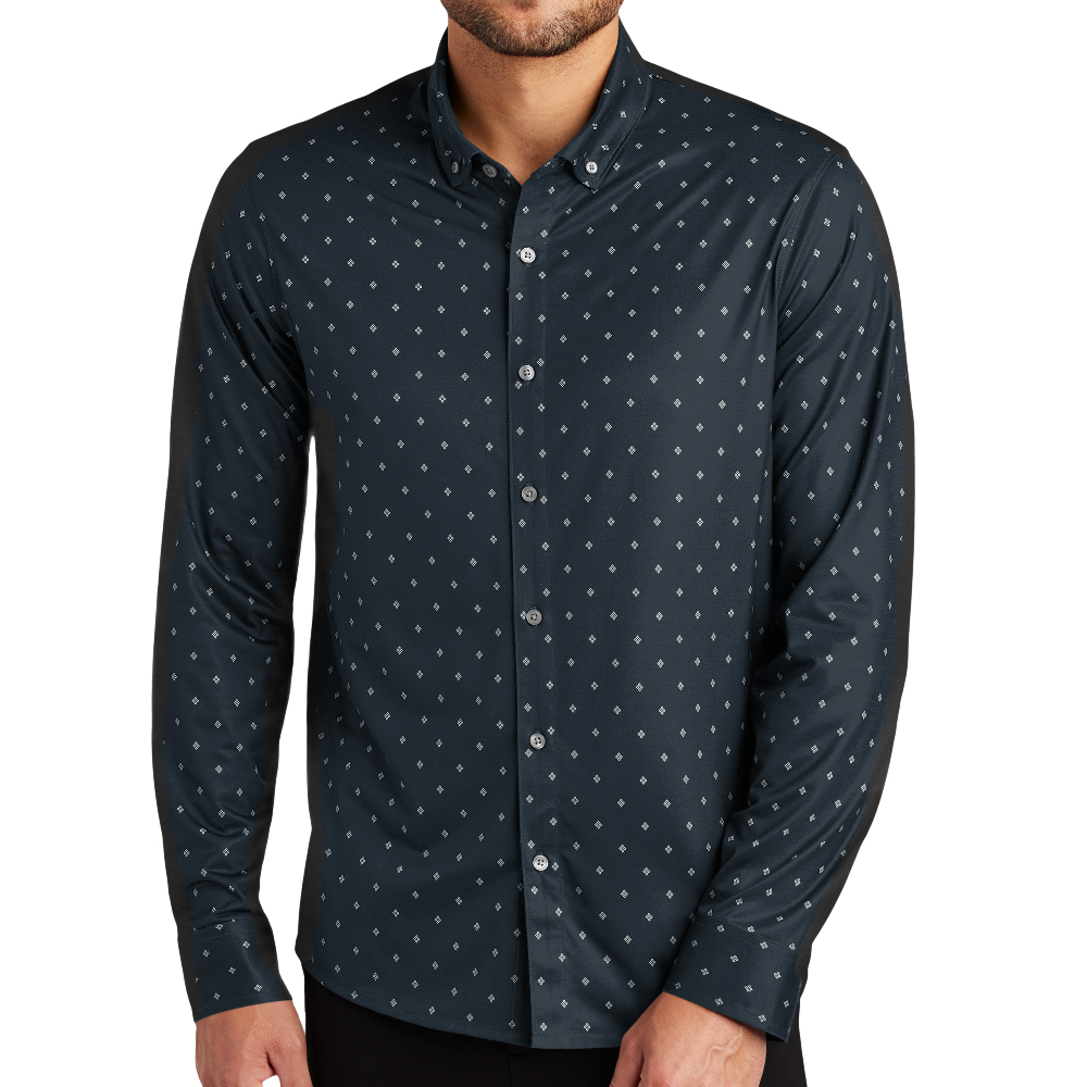 This is the ultimate hybrid for modern workwear, combining the tailored structure of a classic dress shirt with the comfortable drape of soft jersey fabric. The performance-focused 92% polyester / 8% spandex jersey delivers essential moisture-wicking properties and the easy comfort of your favorite tee.