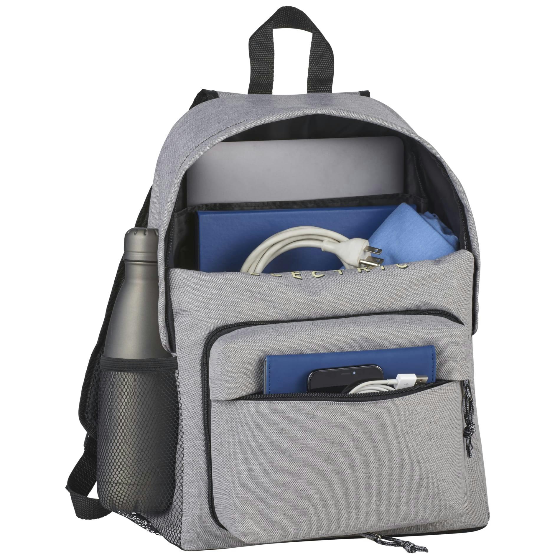 Merchant & Craft-simple classics for your modern lifestyle. The Merchant & Craft Revive RPET Waist Pack Backpack features RPET 600d exterior material made from recycled water bottles. This backpack features a removable waist pack as the front zippered pocket, so whether you need the full sized backpack with or just a quick grab-and-go waist pack, you’ll be set. Carry your laptop with you in 15” inch laptop sleeve inside the zippered main compartment and remember your water bottle with the side mesh water bottle pocket.