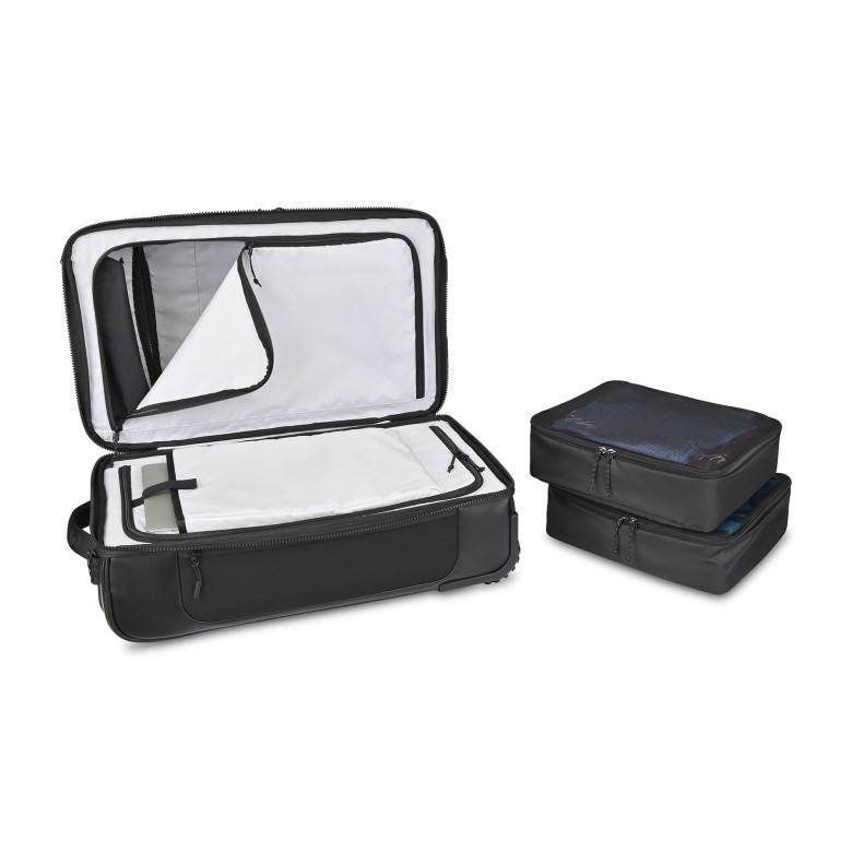 MiiR Bahia 50L Wheeled Duffel — your go-anywhere carry-on for surf trips, weekend getaways, and city-to-coast commutes. Built from rugged recycled fabrics with a TPU coating, this eco-friendly wheeled duffel stands up to sand, gravel, and boardwalk life while supporting community and environmental nonprofits with every sale. Two zippered compartments and included packing cubes keep gear neat; a drop-bottom expands storage while a quick-access 15" laptop sleeve and tricot-lined pocket protect devices and sunglasses. Oversized 2-wheel system rolls smoothly over uneven terrain, and dual side mesh pockets hold a 20 oz Wide Mouth bottle. Sized for most overhead bins and finished with a detachable luggage tag — pack light, travel smart, and go farther. Dimensions: 12.75"L x 22"H x 11"W.
