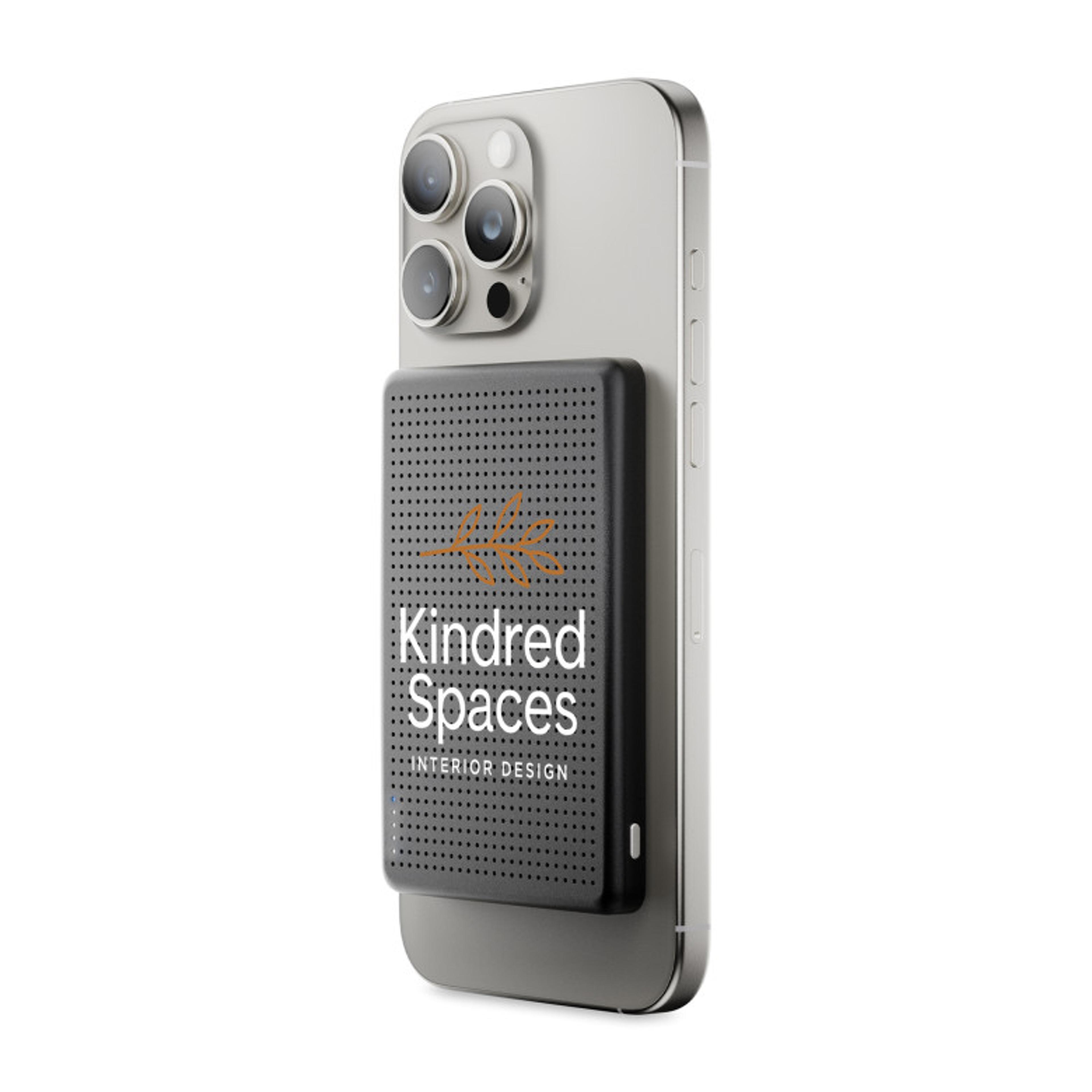 Stay powered wherever you go with this ultra-slim, 0.37" lightweight power bank designed for easy, on-the-go charging. Its strong magnetic attachment works seamlessly with MagSafe phones and cases, delivering up to 15W wireless charging or 20W via USB-C Power Delivery. The 5000mAh capacity fully charges an iPhone 15 Pro to 100%, while LED indicators keep you informed on battery levels. With pass-through charging, built-in safety protection, and compatibility across MagSafe, Qi2, AirPods, and other Qi-enabled devices, it’s the perfect blend of power and portability—complete with a braided USB-C cable and gift-ready packaging.