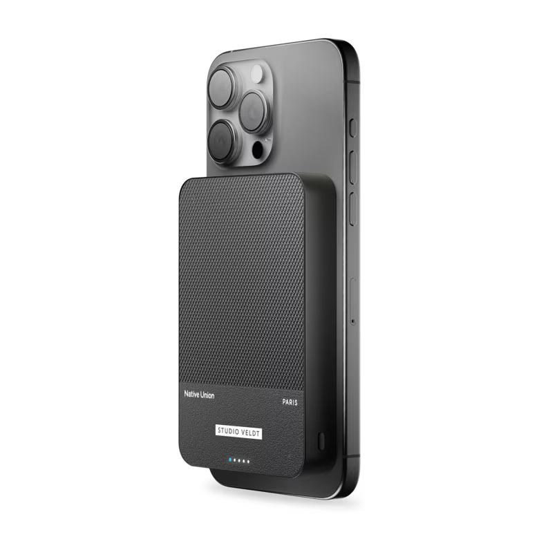 Stay powered up wherever you go with this ultra-slim, lightweight magnetic power bank designed for effortless on-the-go charging. The strong MagSafe-compatible attachment ensures a secure connection, delivering up to 15W wireless and 20W via USB-C Power Delivery. With a 10,000mAh capacity, it can fully recharge an iPhone 15 Pro twice, all while featuring pass-through charging and built-in safety protections. Wrapped in durable, recycled animal-free leather with a signature textured contrast, it comes complete with a braided USB-C to USB-C cable and arrives packaged in an elegant gift box.
