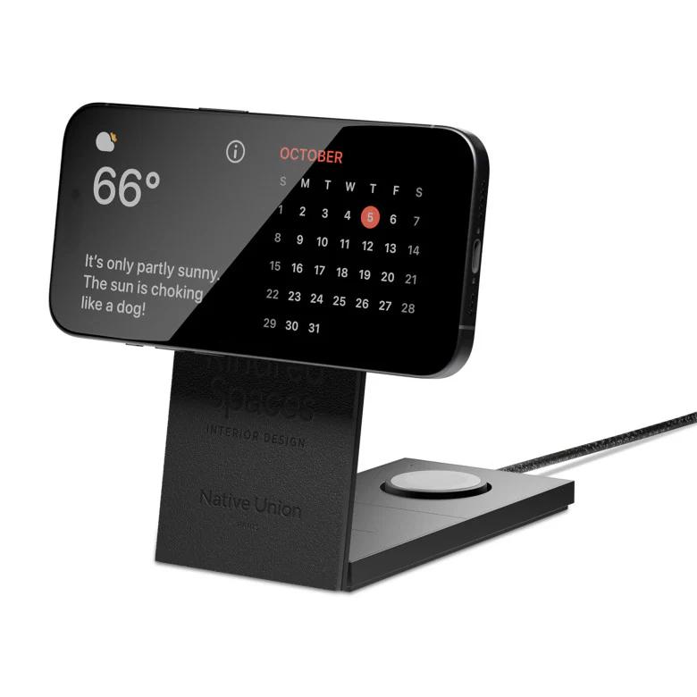 Charge all your essentials in style with this foldable 3-in-1 stand, designed to power your iPhone, AirPods, and Apple Watch at the same time. Qi2 certified and MagSafe compatible, it delivers fast, secure charging up to 15W, while the built-in Apple Watch charger powers Series 9 from 0–80% in about 45 minutes. The adjustable angle doubles as a hands-free display stand—perfect for StandBy mode, streaming, or video calls—and the sleek, weighted metal design makes one-hand detachment effortless. Complete with a travel pouch, fast GaN charger, USB-C cable, and global adapters, it’s the ultimate portable charging solution in a premium gift box.