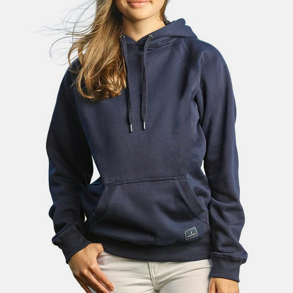 The Nautica Anchor Hoodie is a cozy and stylish addition to your wardrobe that you're going to love. Crafted with a blend of cotton and polyester mercerized fleece, this hoodie offers great comfort and durability. It features a drawstring hood with branded Nautica metal tips and striped neck tape for added detail. The raglan sleeves provide a relaxed fit, while the pouch pocket offers convenient storage. Completing the design is the Nautica patch located on the lower left, showcasing the brand's signature touch. Add a design or logo and enjoy this cozy hoodie!