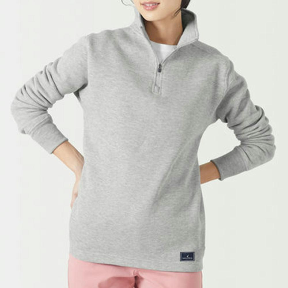 Experience comfort and style with the Nautica Women's Anchor Quarter-Zip Pullover. Crafted from a blend of cotton and polyester mercerized fleece, this pullover offers a cozy and durable fabric. The stand collar on this quarter-zip adds a touch of sophistication, while the striped neck tape enhances the visual appeal. With ribbed cuffs and hem, this pullover ensures a snug fit and added warmth. Just add a logo and let this quarter-zip handle the rest.