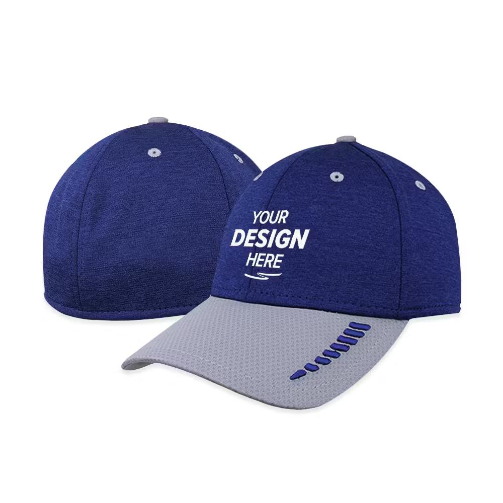 A stretchable cap that pairs a heather crown and colorblock bill for fans and players to show off team pride. With a variety of color options to choose from, this cap is great for uniforming sports teams. All that's missing now is your design or logo!