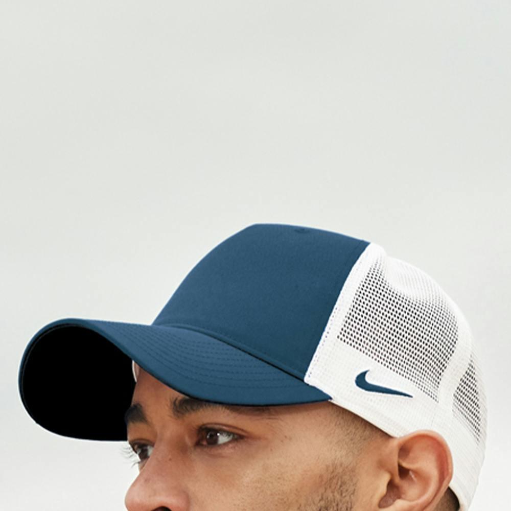 With its structured, mid-profile look, this Nike Snapback Mesh Trucker Cap has ultra-breathable mesh panels and a 7-position adjustable snapback closure for the perfect fit. Features an embroidered Swoosh logo on the left-side middle panel. Made of recycled polyester front and mid panels and recycled mesh back panels.
