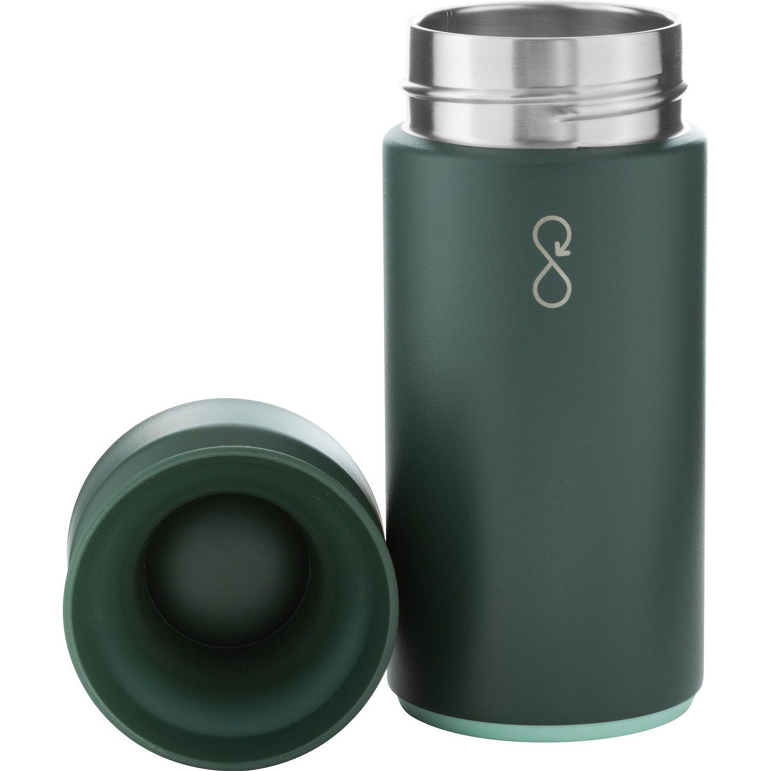 Sip sustainably with this 12 oz bottle, made from 90% recycled stainless steel for eco-friendly durability. Its double-wall vacuum insulation keeps beverages hot or cold for hours, perfect for coffee, tea, or water on the go. The threaded 360° leak-proof lid allows for easy, spill-free sipping from any angle. Finished with a durable powder coat, this compact, versatile bottle combines sustainability, performance, and style.