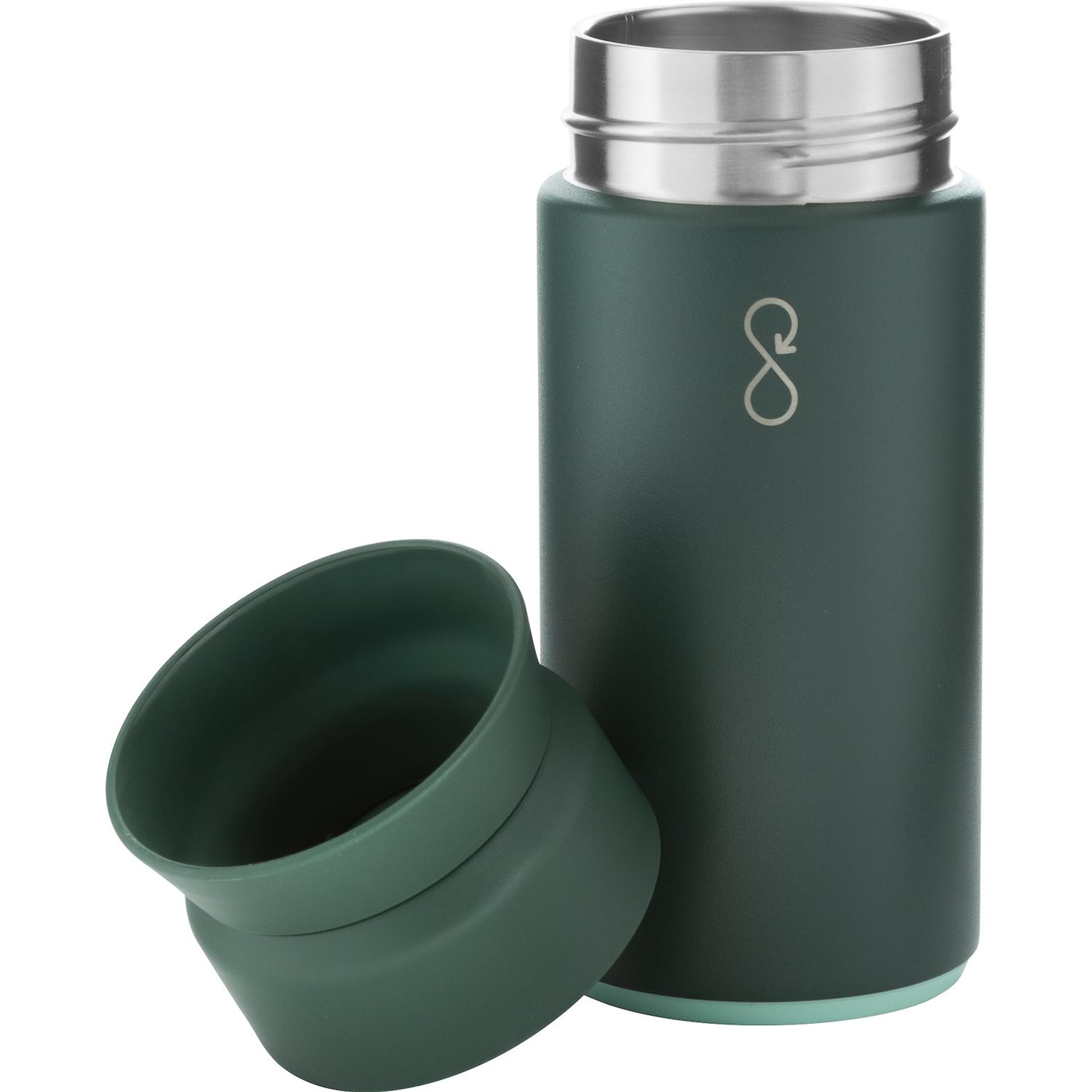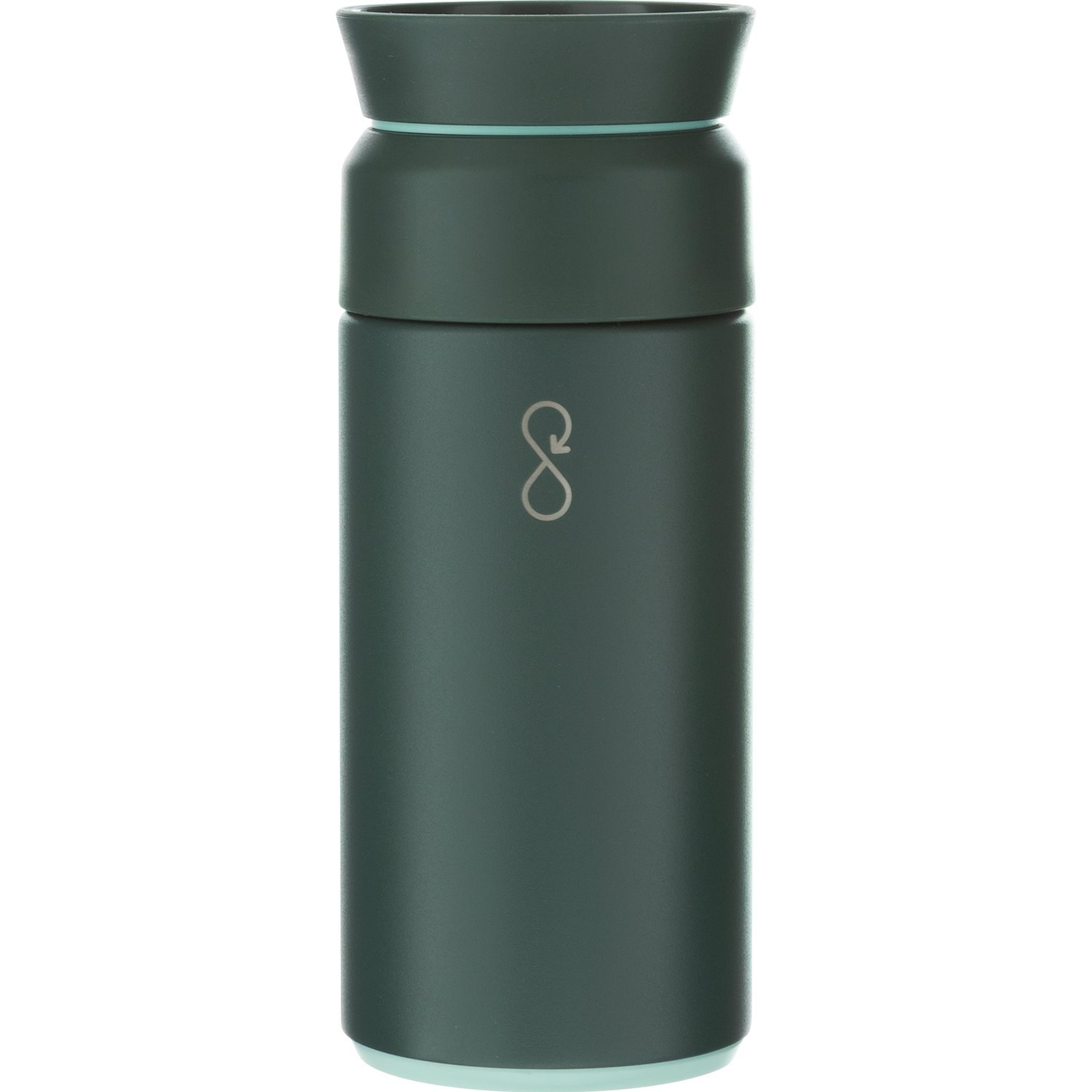 Sip sustainably with this 12 oz bottle, made from 90% recycled stainless steel for eco-friendly durability. Its double-wall vacuum insulation keeps beverages hot or cold for hours, perfect for coffee, tea, or water on the go. The threaded 360° leak-proof lid allows for easy, spill-free sipping from any angle. Finished with a durable powder coat, this compact, versatile bottle combines sustainability, performance, and style.