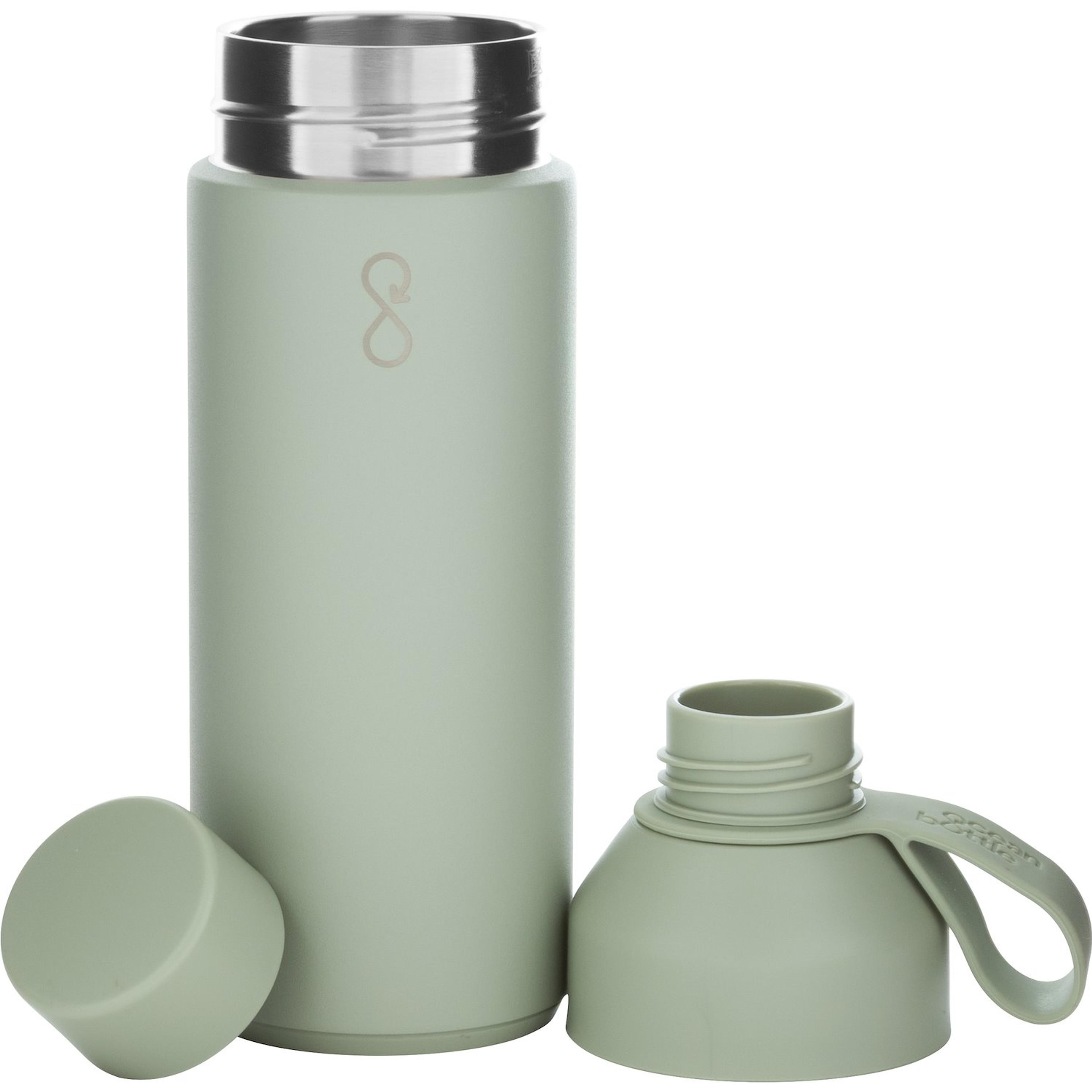 This 17 oz bottle is crafted from 90% recycled stainless steel and finished with a durable powder coating. Its double-wall, vacuum-insulated design helps maintain the temperature of both hot and cold beverages. A threaded dual-opening lid provides convenient filling, pouring, and cleaning. The integrated carrying loop makes it easy to take wherever you go.