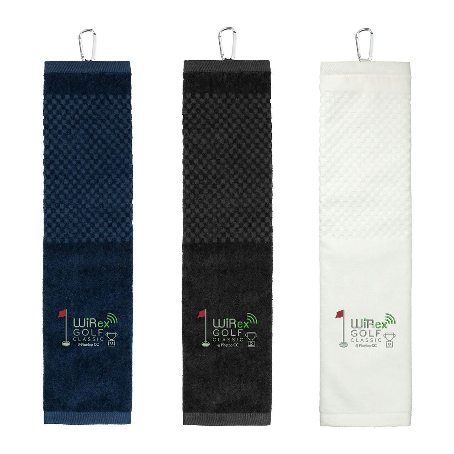 Keep your gear in top shape from the first tee to the final putt with the Tri-Fold Scrubber Golf Towel. Made from heavyweight 100% cotton, this towel’s tri-fold design offers extra surface area for scrubbing dirt and debris off golf balls and clubs. A built-in grommet and aluminum carabiner clip make it easy to attach to any golf bag for quick access on the course. Durable, convenient, and ready for your logo, it’s a must-have accessory for golfers of every level.