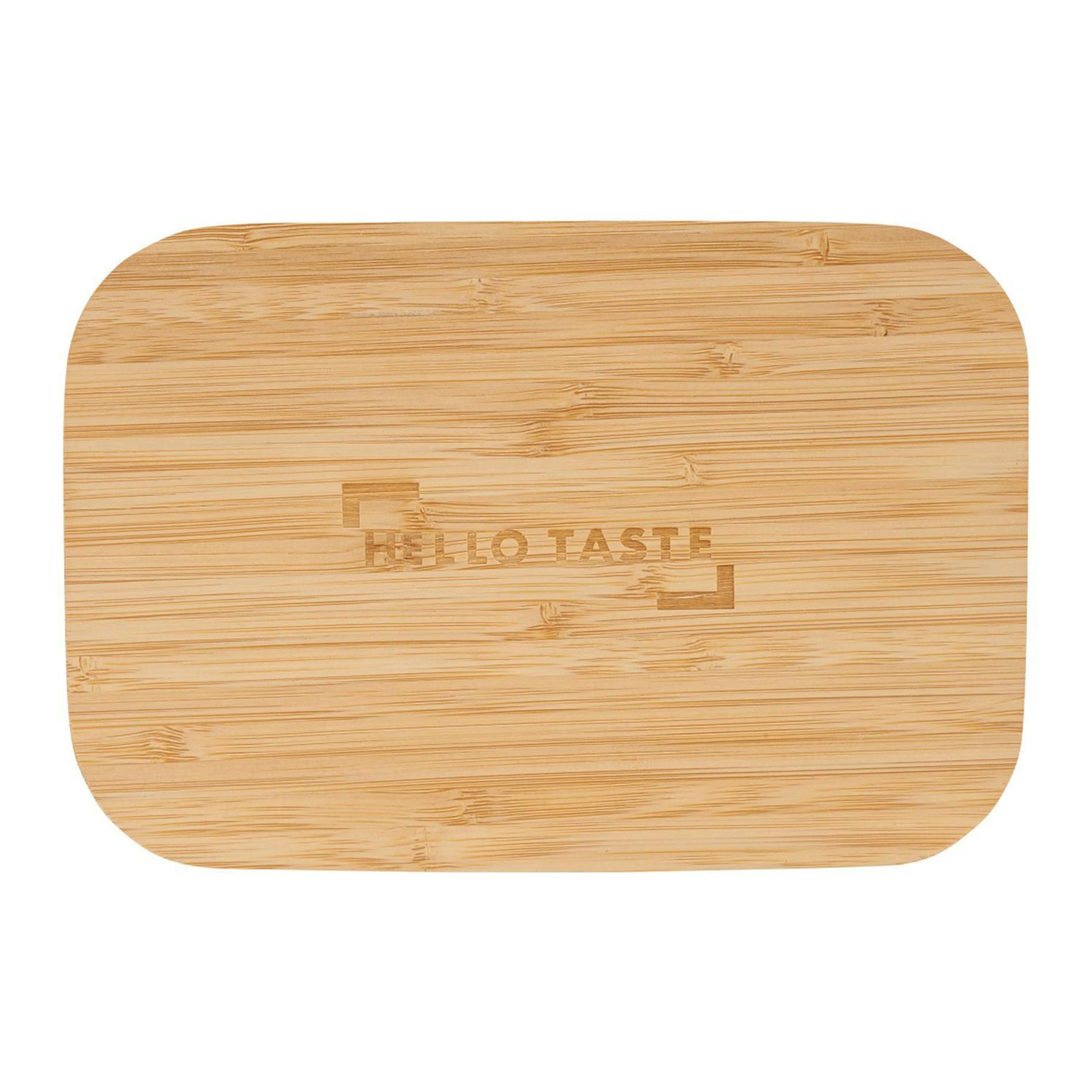 This innovative food storage piece features a bamboo lid that doubles as a cutting board. The lid has a silicone lining and silicone band to ensure food is kept secure in the container. This container is not suitable for liquids and must be used for solid food only. This item is not suitable to be used in the microwave. Due to the nature of the bamboo material, variations in laser imprinting quality may occur.