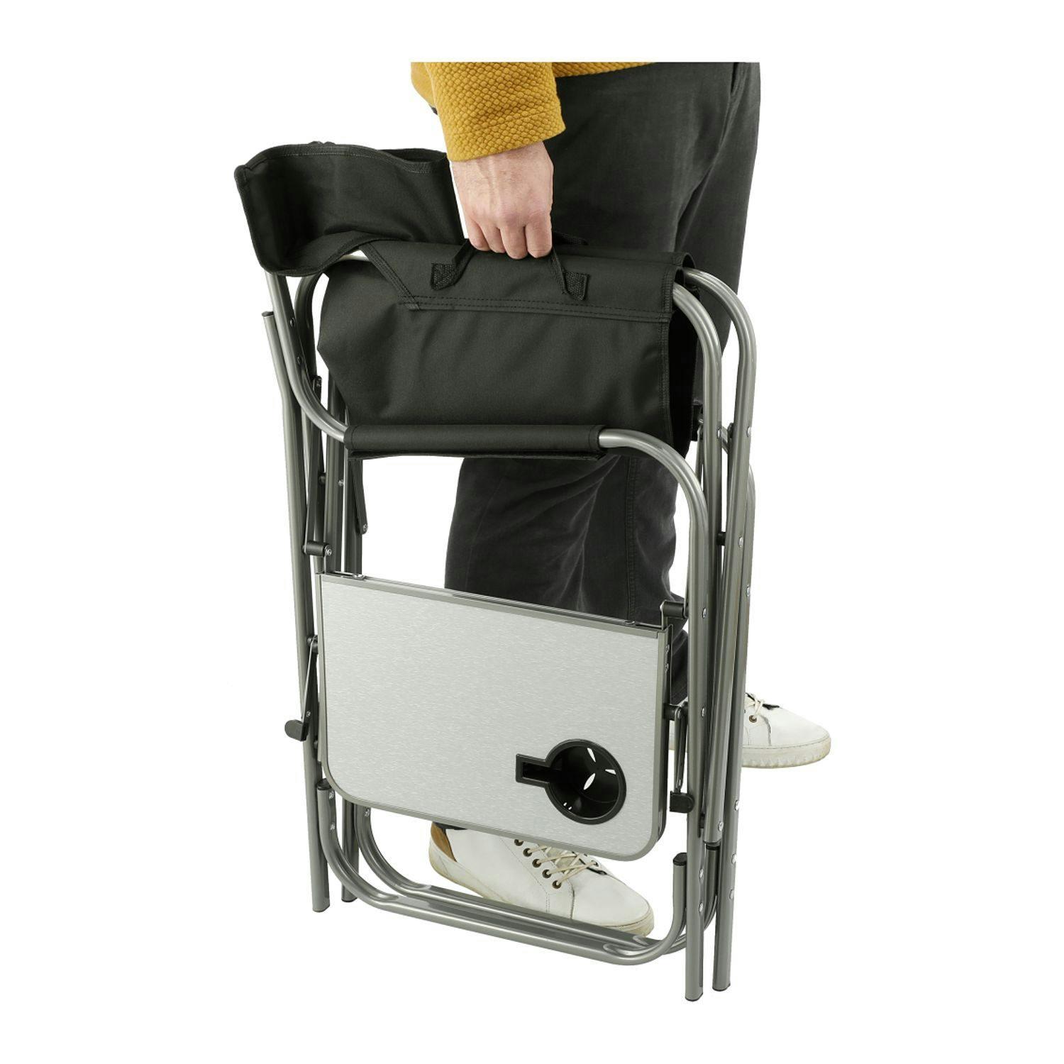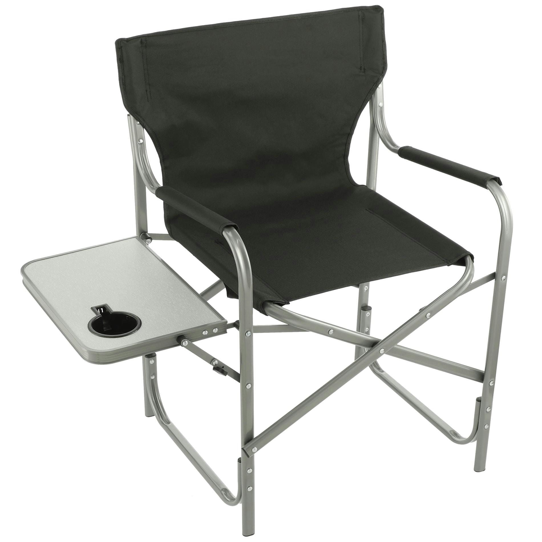 Take comfort anywhere with our Director’s Chair featuring a built-in side table—perfect for camping, tailgates, outdoor events, or extra seating at home. The sturdy steel frame and durable 600D polyester provide reliable support and a more upright seating position, while the chair folds flat for effortless transport and storage. The extendable 15" x 10" side table offers a convenient spot for drinks, snacks, or gear, making this folding chair a versatile go-to for any adventure.