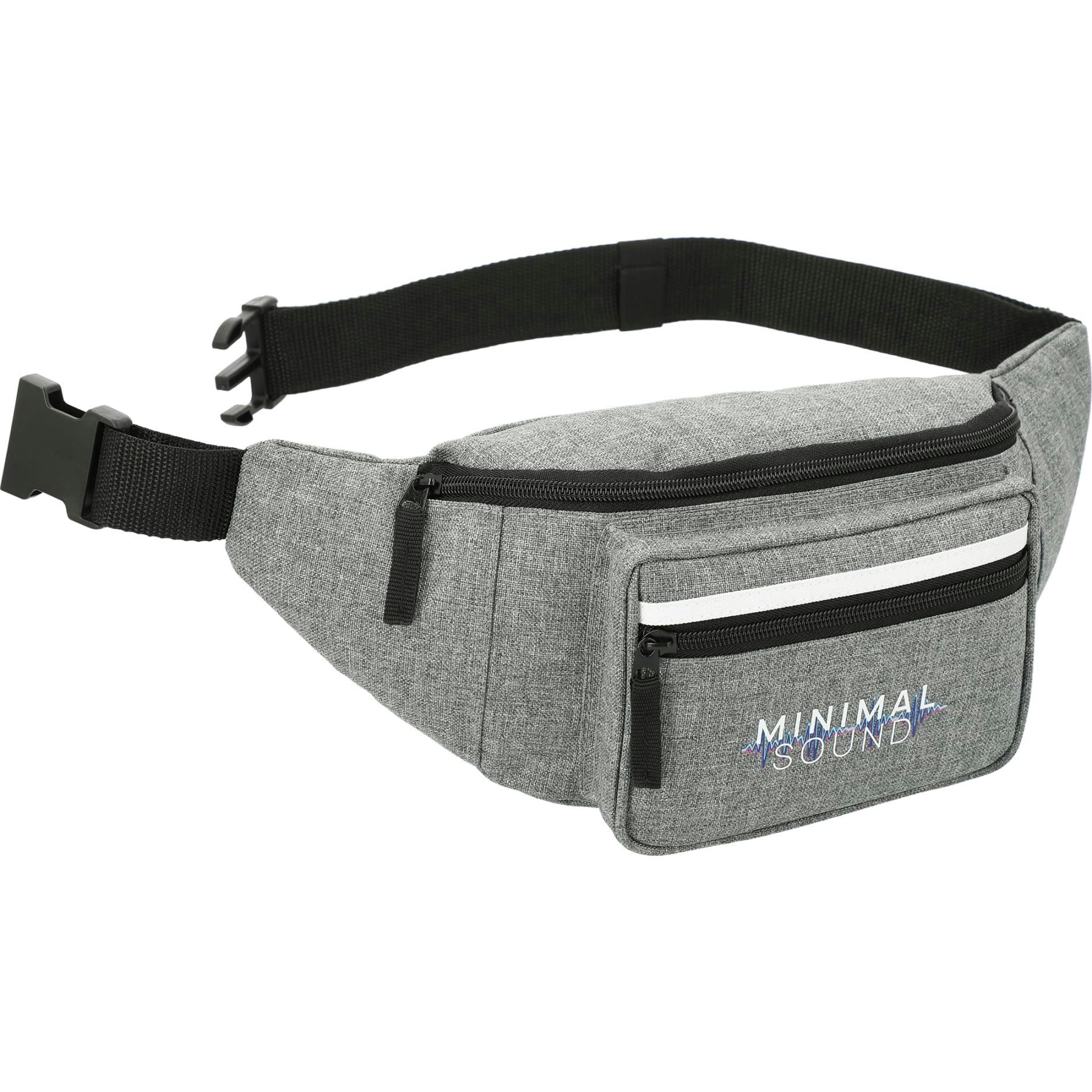 The Journey Fanny Pack is a durable, hands-free waist pack made from rugged 600D polyester—perfect for travel, festivals, outdoor adventures, or everyday errands. It offers a roomy zippered main compartment for your phone, wallet and snacks plus a zippered front pocket for keys and cards, while the adjustable strap extends up to 47" for waist or crossbody wear. Compact yet practical at 15" x 6" x 3", this bulk-packaged fanny pack from PCNA is ideal for branded giveaways and promotional events.