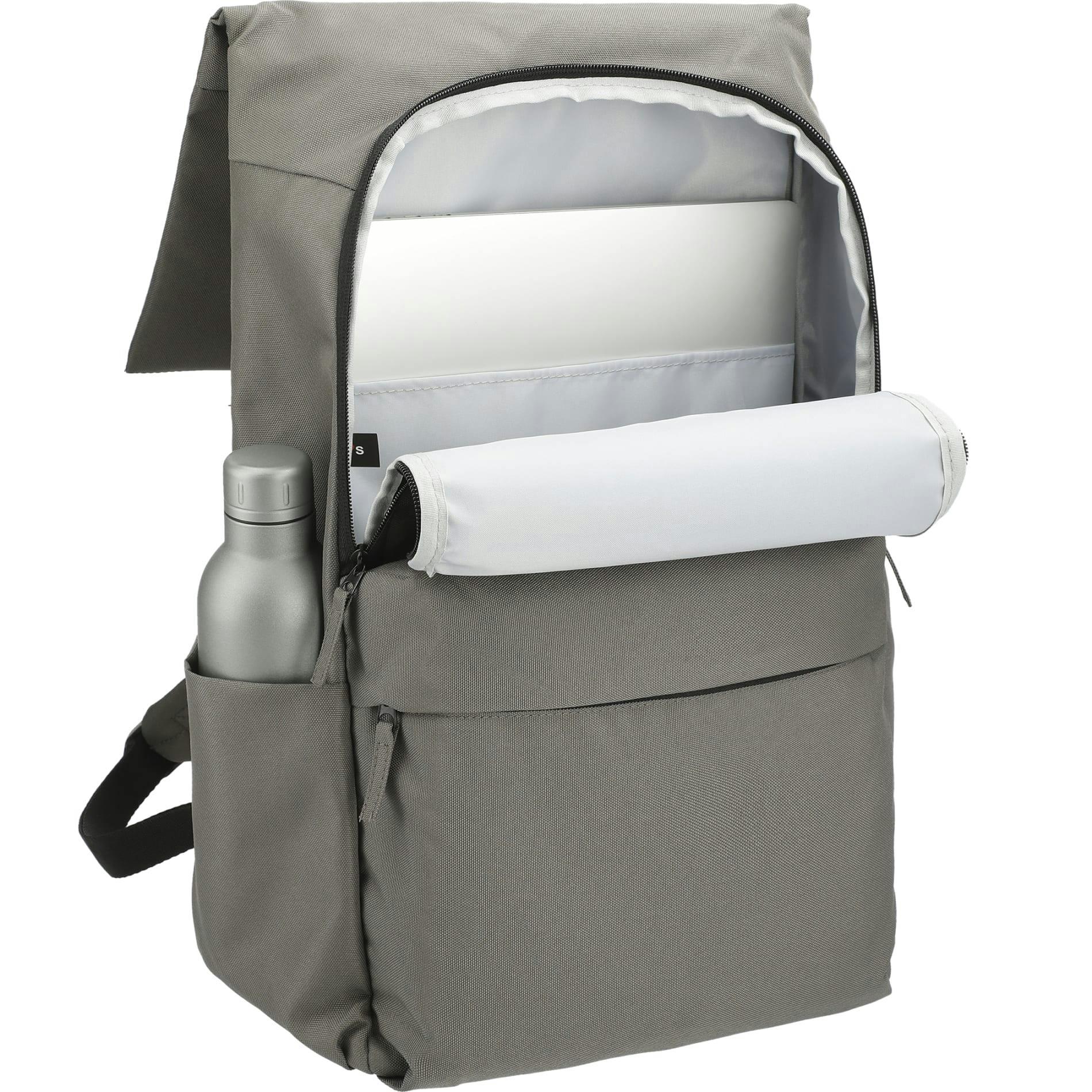 Merritt Recycled 15” Computer Backpack delivers a clean, modern everyday carry solution built from recycled polyester (made from recycled water bottles). Thoughtfully organized for commuters, students and conference swag, it features a roomy zippered main compartment with a padded 15" laptop sleeve, two front zip pockets for quick-access essentials, and a side water-bottle pocket. Padded, adjustable shoulder straps keep you comfortable on the go while durable zippers secure your gear. Eco-friendly and purpose-driven—1% of sales support environmental nonprofits through PCNA’s partnership with 1% For The Planet. Ideal as an eco-conscious promotional backpack for work, school, travel, and events.
