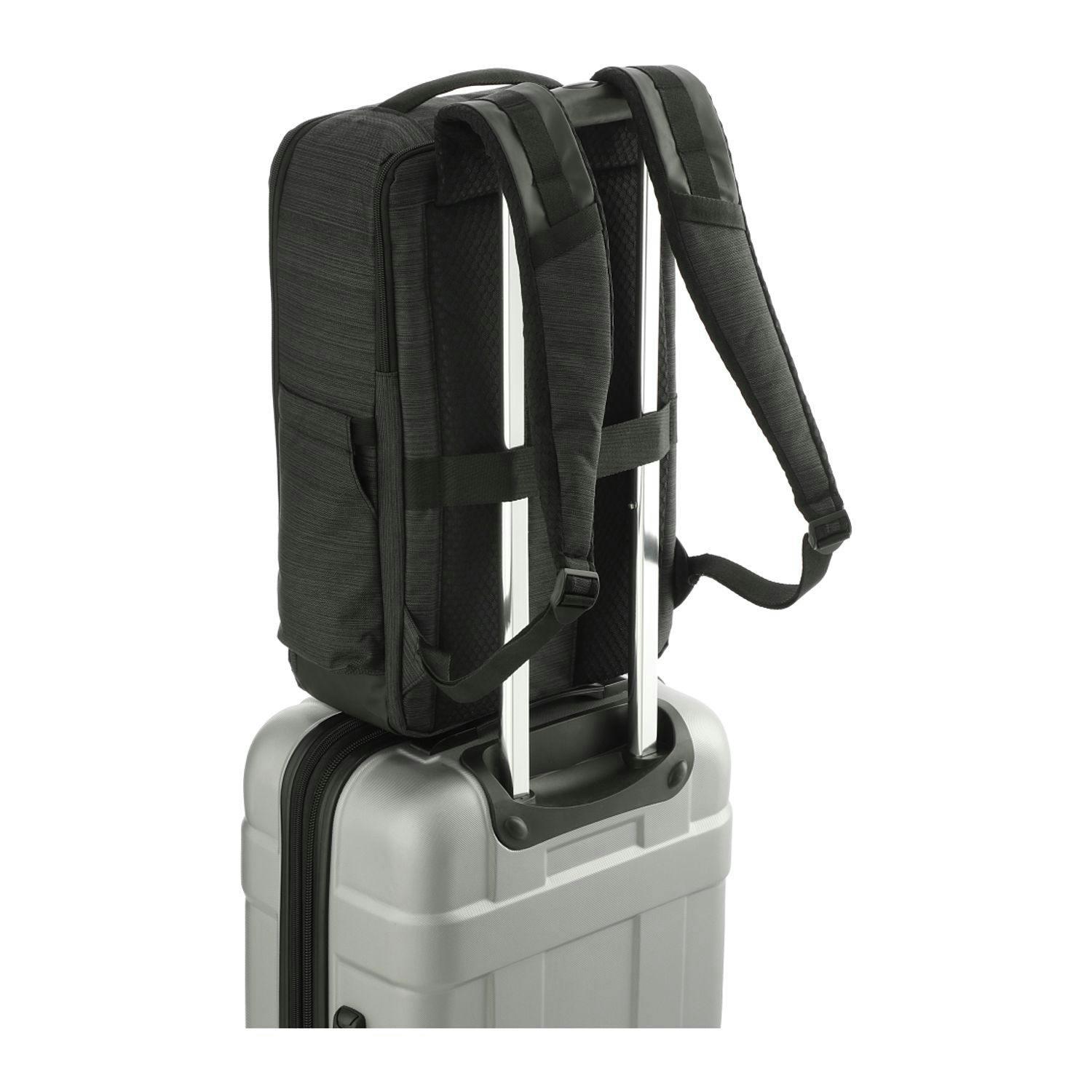 Whether you're back in the office, working from home, or working from a different city every week, the NBN Work Anywhere 15" Computer Backpack is up to the task. This backpack features a dedicated padded 15" laptop compartment. The zippered main compartment includes a slash pocket on the back wall that's perfect for tablets. It also features a zippered mesh pocket and an organizational panel on the inside of the front panel. The separate, zippered bottom compartment includes a removable organization pouch to keep smaller belongings in one place. The padded back straps and back panel, trolley sleeve, and top-grab handle make it easy to grab and go.