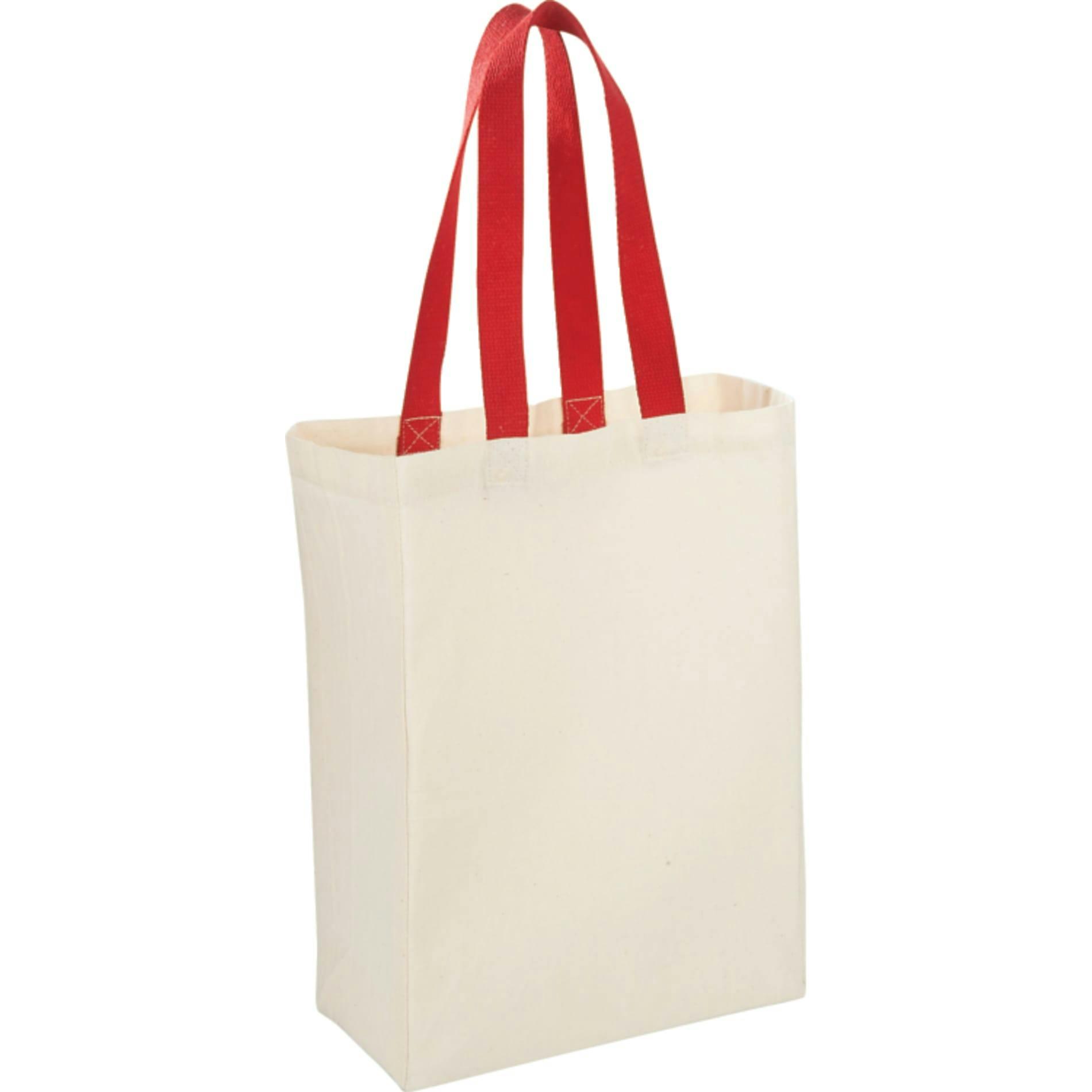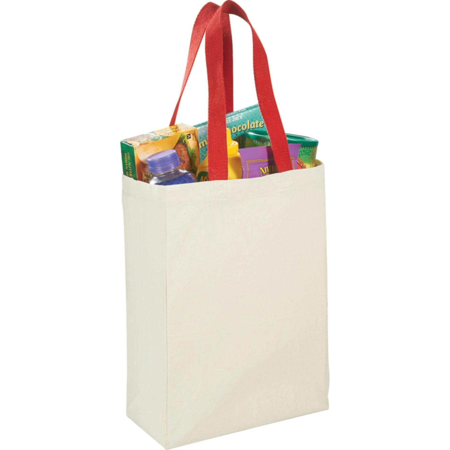 The custom Small Cotton Canvas Grocery Tote Bag is the perfect reusable tote for shopping trips, errands, and everyday use. Made from 5 oz. cotton canvas, it features a spacious open main compartment and sturdy 17.5" webbed handles with an 8" drop for comfortable carrying. Measuring 14"H x 10"W x 5"D with a 5" gusset, it provides just the right amount of space. Customize it with your logo for a stylish and practical branded tote.