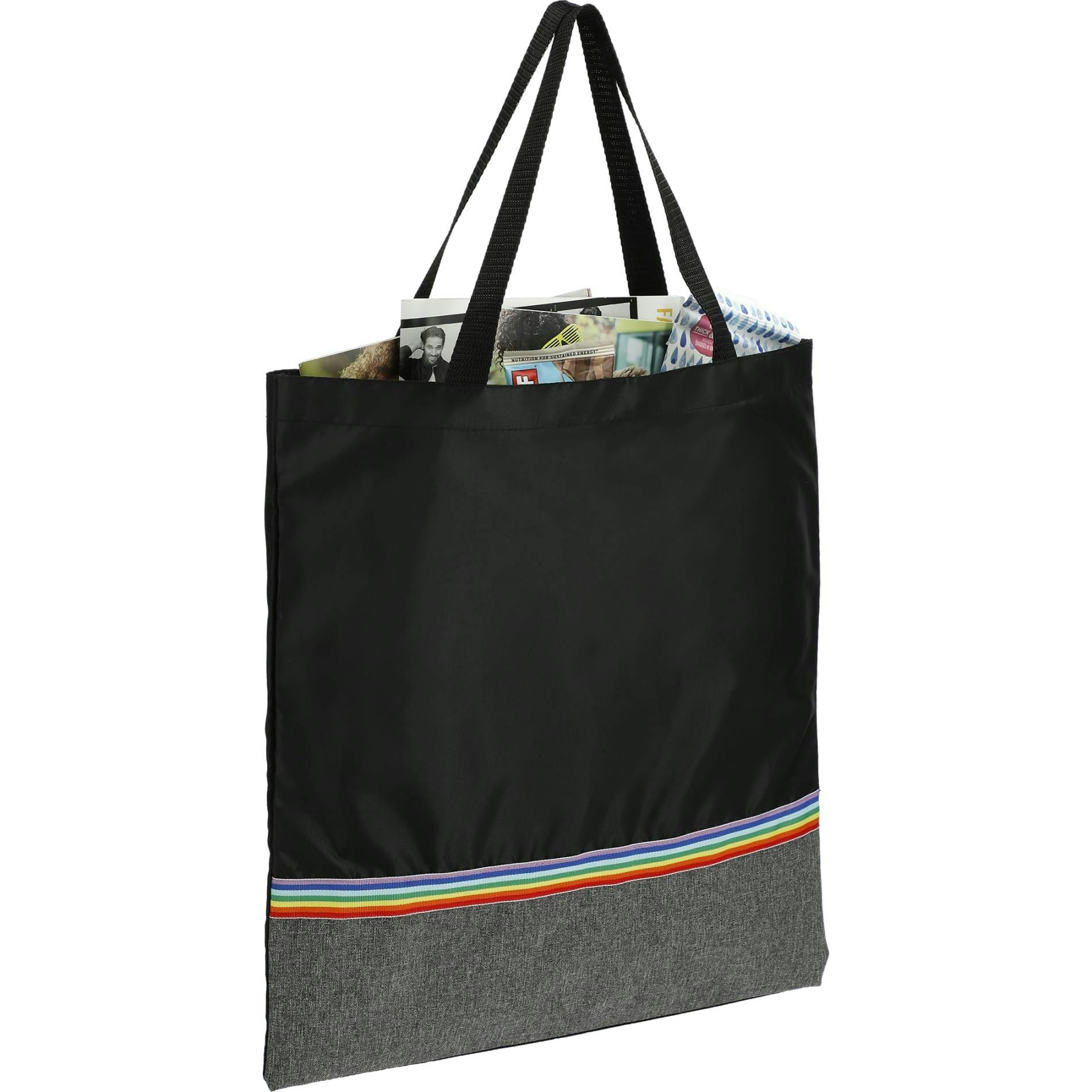 The Large Rainbow RPET Contention Tote Bag is bound to make a statement at your next event. This bag is manufactured from 100% recycled 210d polyester, made from water bottles.
