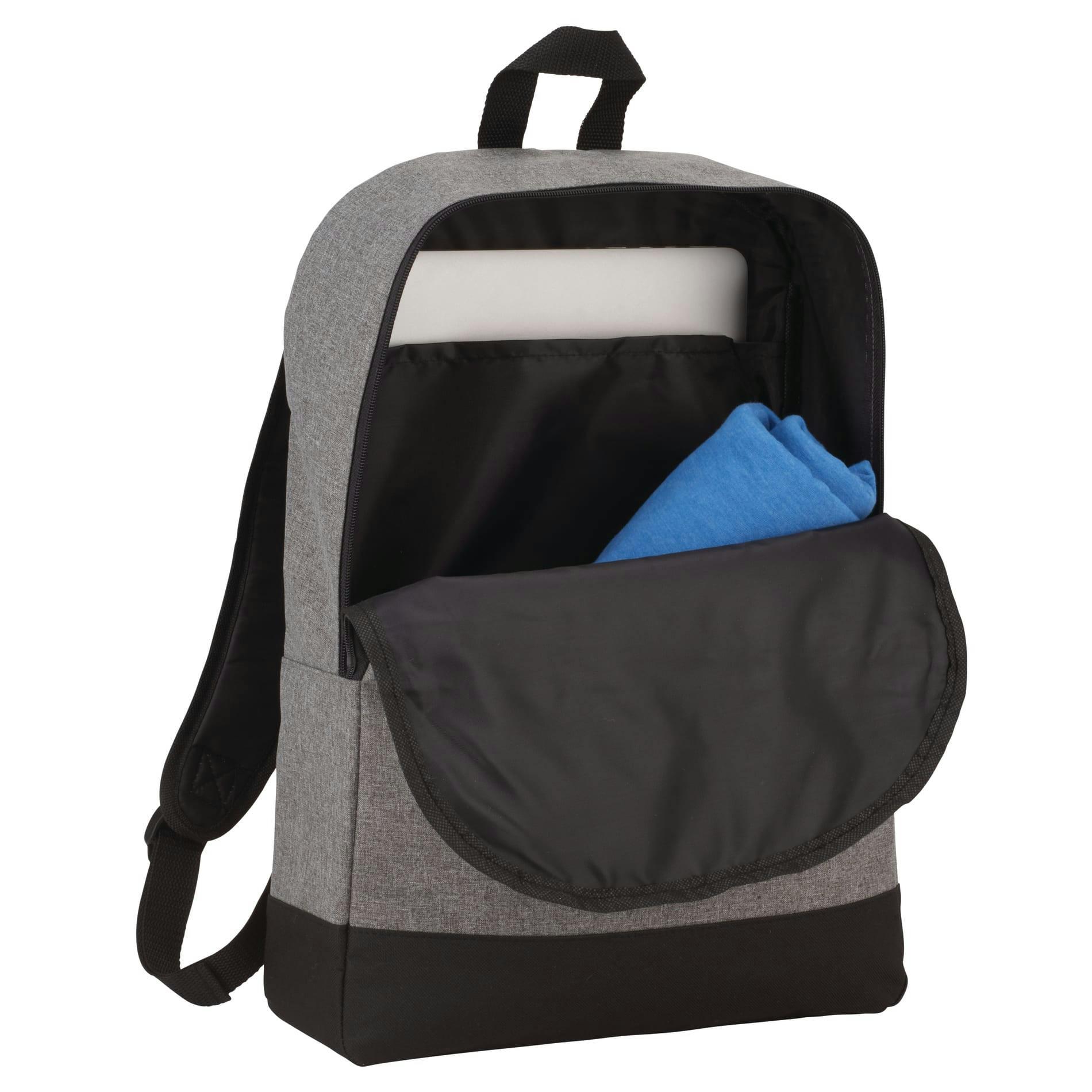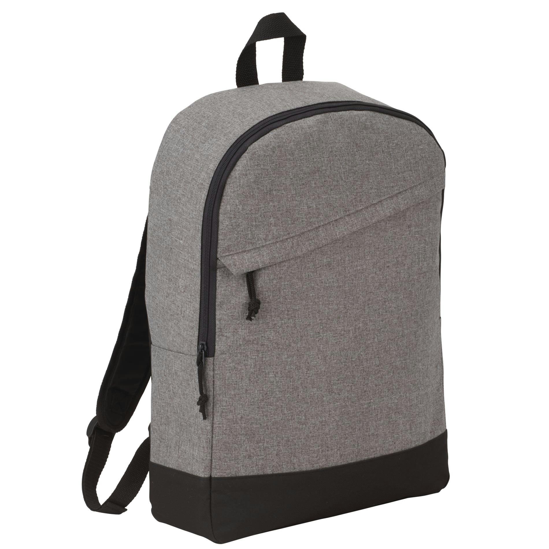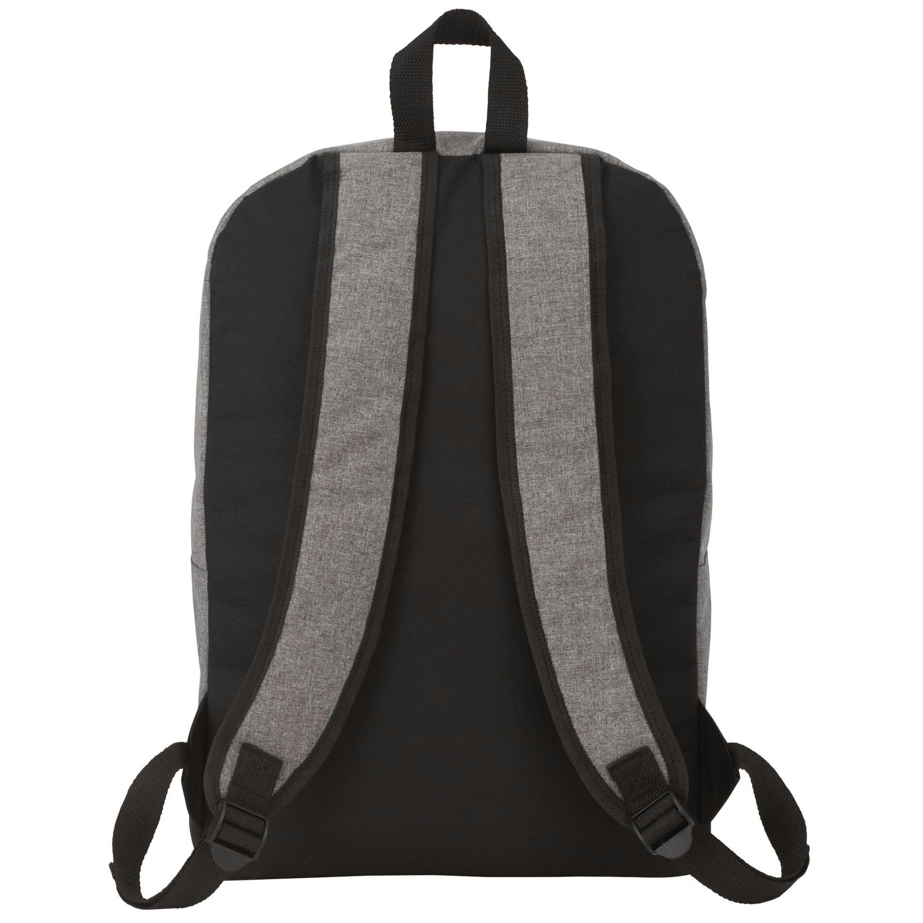 Slim, durable and travel-ready, the Range 15" Computer Backpack keeps your 15-inch laptop safe and accessible on every commute. Made from rugged 600D polyester, it features a padded laptop sleeve, padded back panel, top grab handle and adjustable straps for all-day comfort, plus a front vertical zippered pocket with rain flap to protect essentials. Lightweight with a compact 17" x 12" x 4.5" profile, it’s perfect for students, professionals and event giveaways. Note: minor color variations may occur due to fabric dyes, weaves and printing.