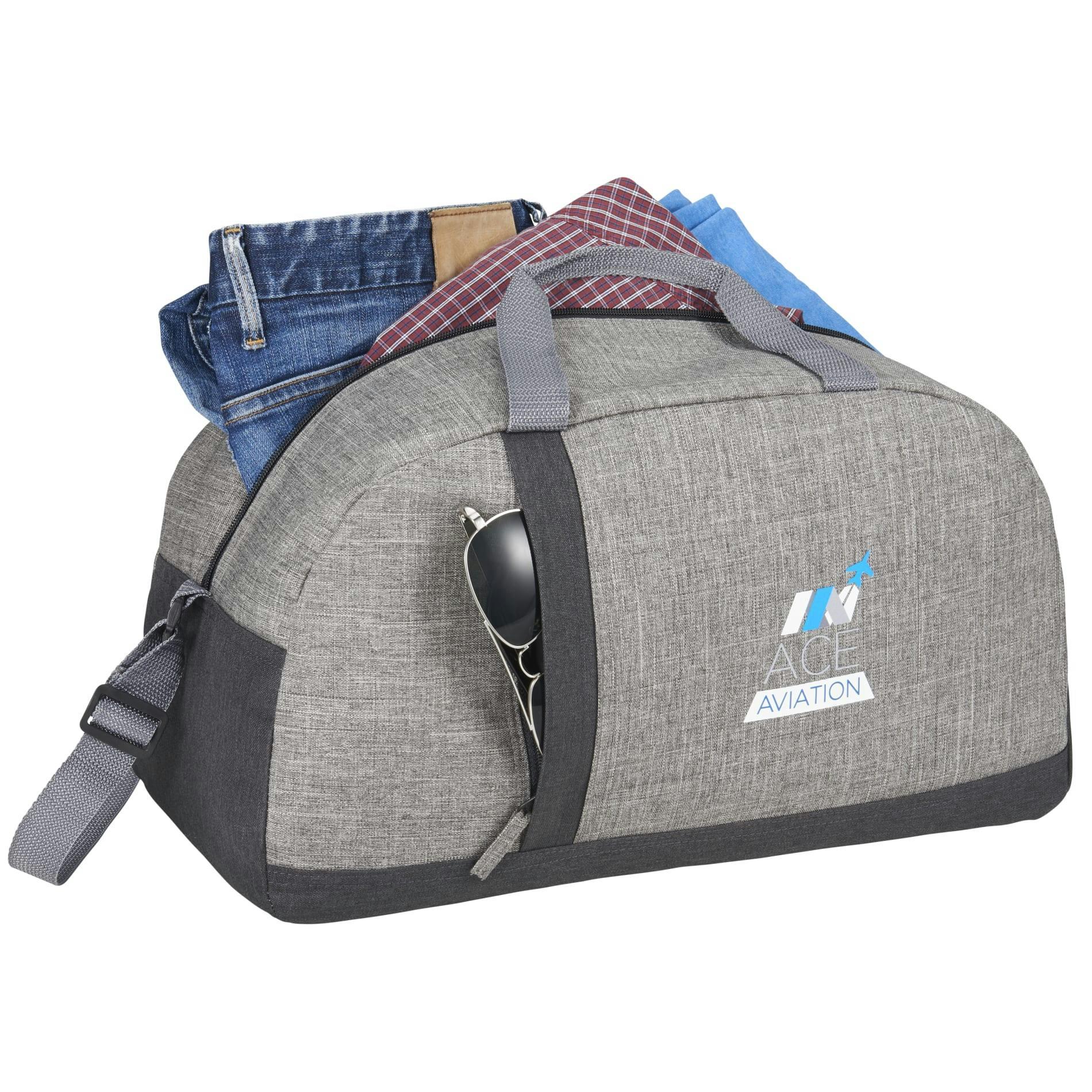 Carry your gear sustainably with the Reclaim Recycled Sport Duffel. Made from 100% rPET, this eco-friendly duffel features a spacious zippered main compartment and a vertical front zippered pocket for easy access. Adjustable shoulder strap and included pouch make it ideal for sports, travel, or everyday use.