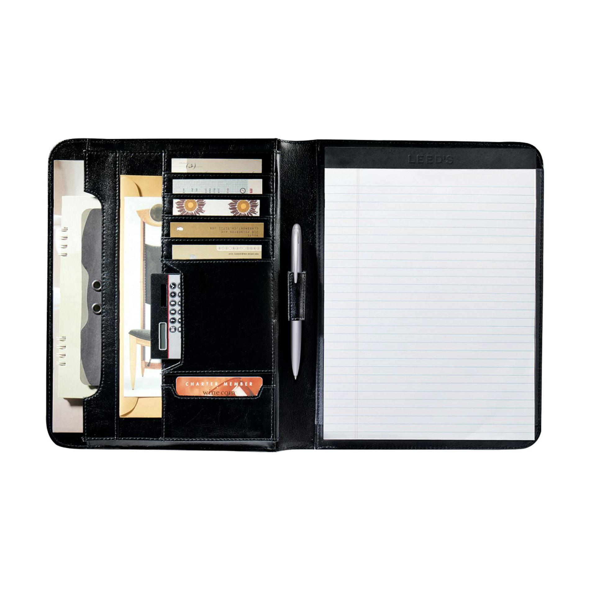 Renaissance Writing Pad — a sleek Italian‑style leather padfolio from PCNA that keeps meetings and pitches organized and professional. Features a gusseted file pocket, multiple business card slots, calculator pocket, front storage pocket and integrated pen loop; includes one 8.5" x 11" writing pad (refill 9091-01) — pen and additional refills sold separately. Ideal as a corporate gift or everyday business organizer for conferences, sales calls and client meetings.