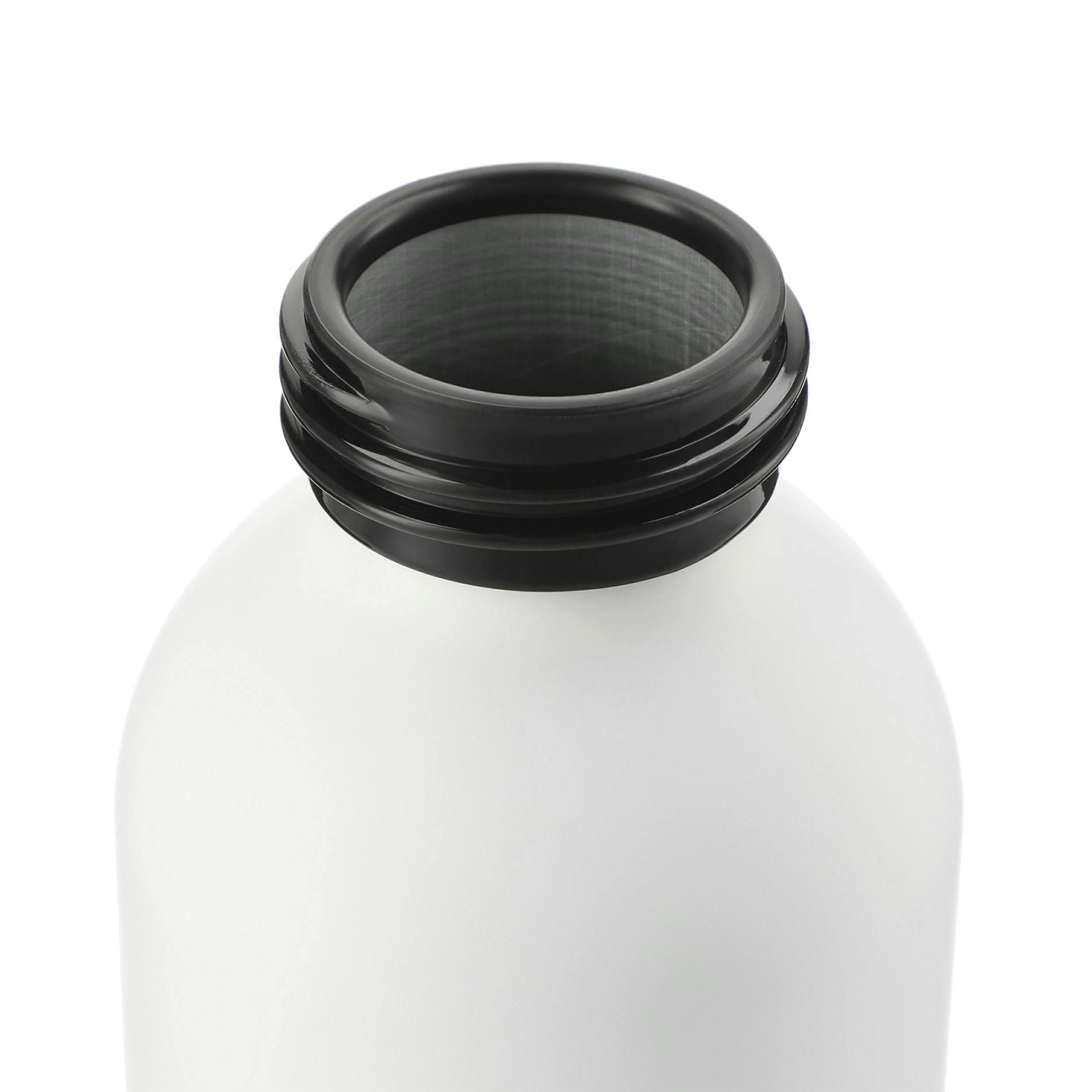 The Ryze 22oz Aluminum Sports Water Bottle features single wall construction with a screw-on, spill resistant bamboo lid. The water bottle lid’s built in silicone strap is designed to make this item easy to carry when you are on the go. The exterior is a matte metallic finish. Hand wash only.