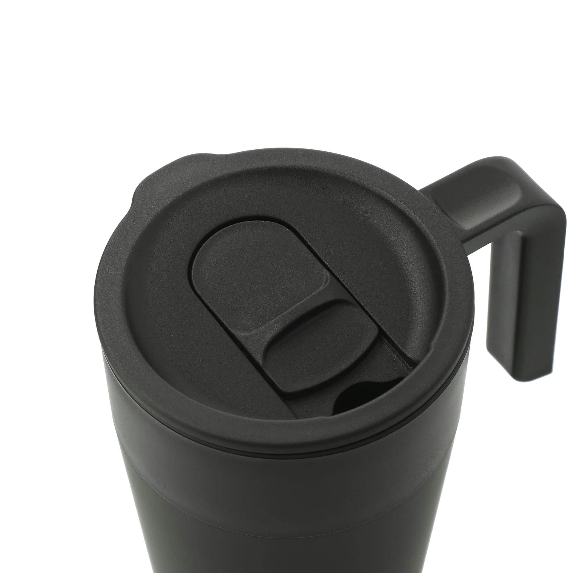 The Sigrid 16oz RPP w/ Stainless Steel Mug features a recycled PP liner, lid, and handle, plus a stainless steel outer wall. The spill-resistant, press-on lid with slide closure makes this modern mug perfect for enjoying your favorite beverages on the go. Recommend to hand wash only. Through a partnership with 1% For The Planet, one percent of sales of all EcoSmart® products are donated to environmental nonprofits.
