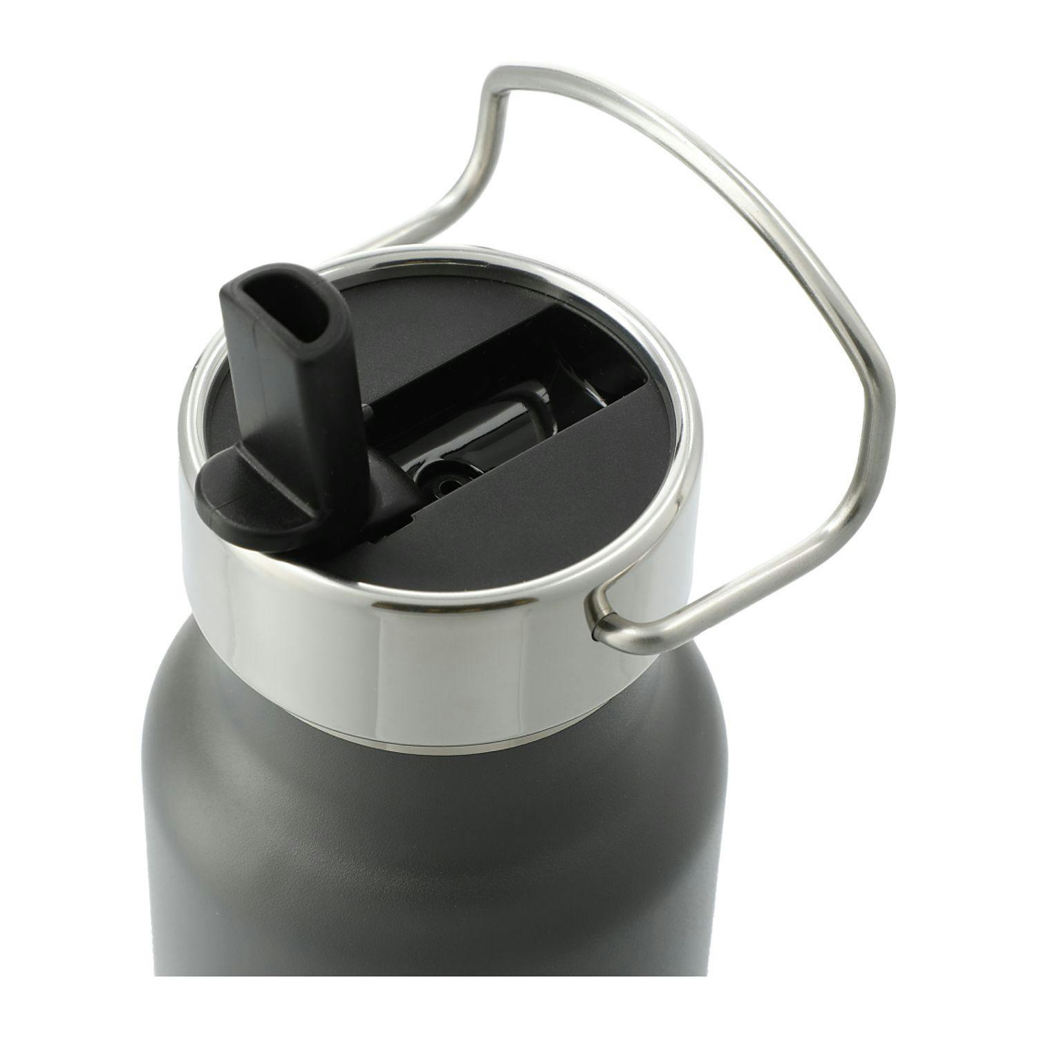 Durable, double-wall stainless steel vacuum construction with copper insulation, which allows your beverage to stay cold for up to 48 hours and hot for at least 12 hours. The construction also prevents condensation on the outside of the water bottle. On-trend, durable powder coating. Stainless steel screw-on, spill resistant lid with integrated straw, and durable stainless steel hand loop. Wide opening for comfortable filling and pouring. Perfect for ice cubes. Fits most standard car cup holders. 25oz.