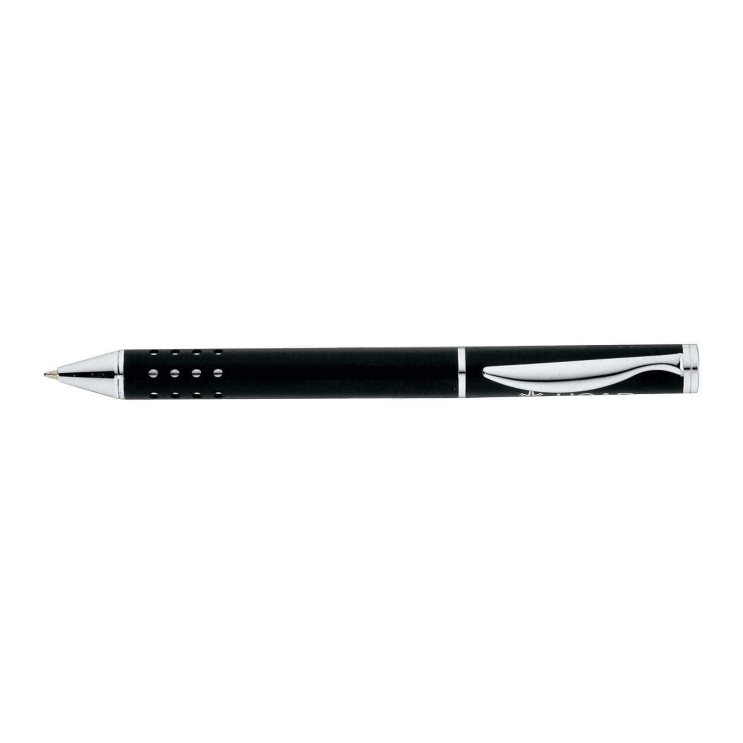 Unique brass barrel cutouts reveal high shine chrome accents. Twist action mechanism. Pen includes premium black ink cartridge and 1.0mm pen tip. Laser 360 is available on this style. Laser finish is shiny chrome.