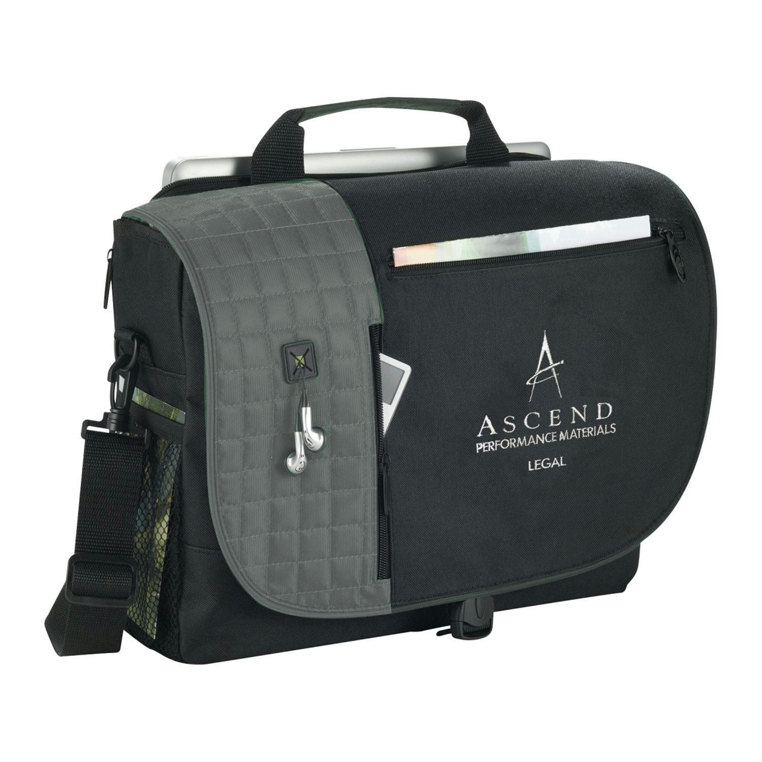 Laptop-only section unfolds lying flat on X-ray belt, expediting airport security. Holds most 15" laptops. Main open compartment with organization under flap. Front zippered main compartment. Second front zippered accessory pocket with access to earbud port. Side mesh pockets. Comfort carry handle and removable, adjustable shoulder strap. Rear trolley handle pass-through.