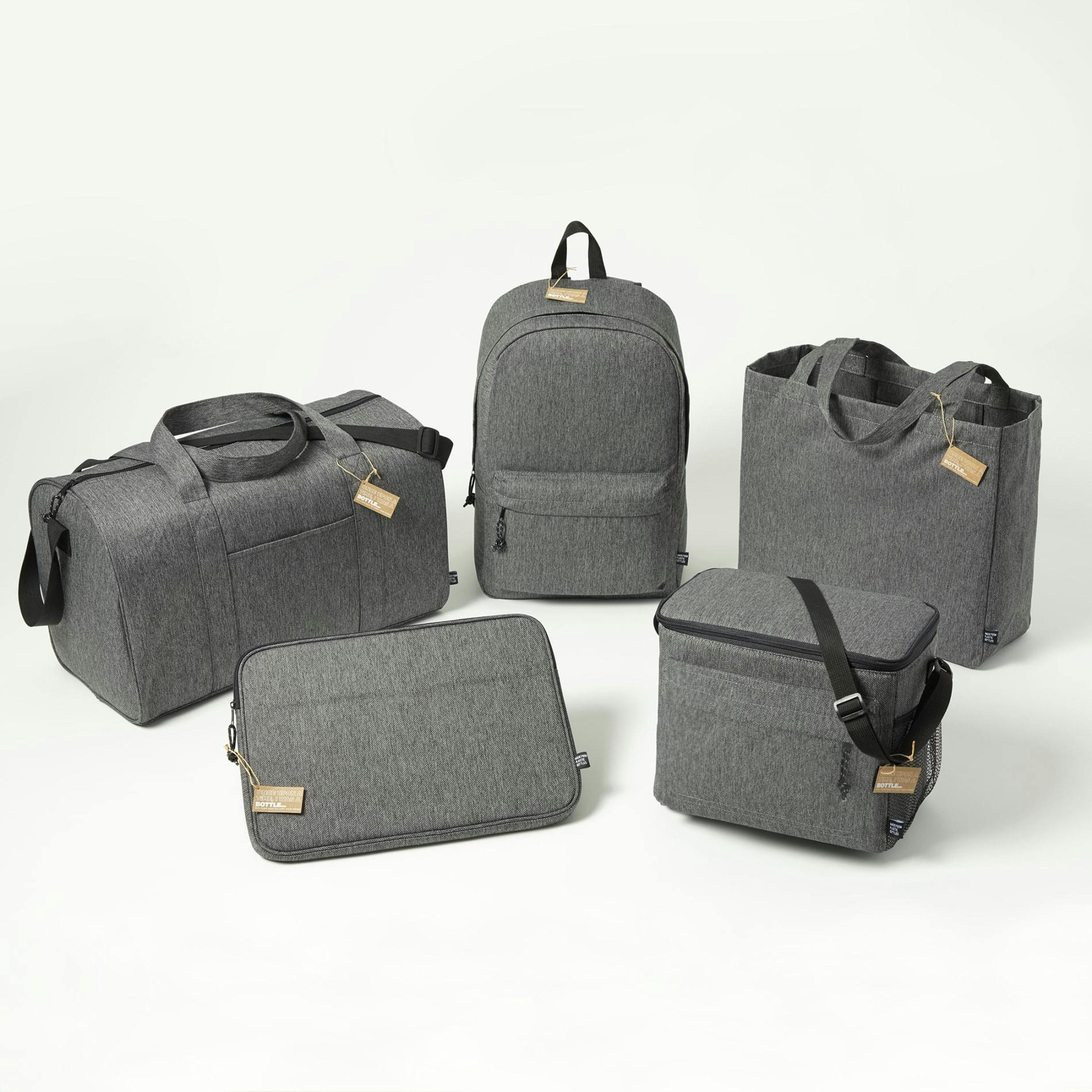 Made from recycled RPET, the Vila Recycled 15" Computer Backpack pairs eco-friendly materials with a sleek, durable design—ideal for commuting, campus life, or promotional events. The zippered main compartment includes a padded sleeve for most 15-inch laptops, while the front zip pocket and included accessory pouch keep chargers, phones, and pens organized. Carry via padded, adjustable shoulder straps or the top grab handle—an attractive, sustainable laptop backpack built for everyday use and branding.