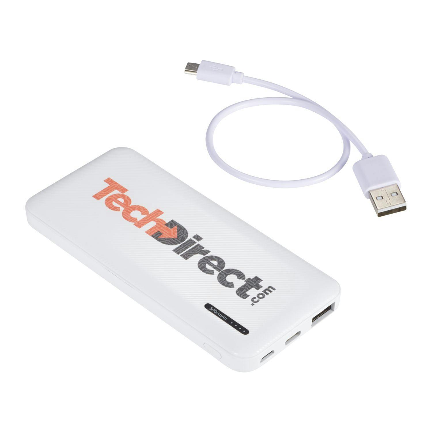 The Zodiac High Density 5000 mAh Power Bank is a pocket-sized portable charger that gives reliable backup power for phones, tablets and on-the-go devices. It features a 5,000 mAh (18.5Wh) Grade-A lithium‑polymer cell with a 5V/2A output and 5V/2A Micro‑USB and Type‑C inputs for fast recharging. Includes a Micro‑USB-to‑USB cable to recharge the power bank or other Micro‑USB devices. Slim, lightweight design fits easily in a pocket or bag and ships in an FSC-certified white gift box—perfect for corporate gifts, events, and promotional giveaways. Travel note: power banks are permitted in carry-on luggage only (TSA discretion); charge before first use.