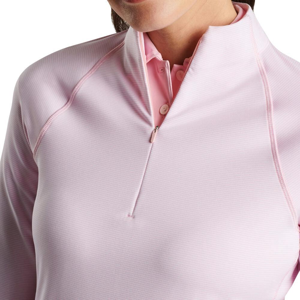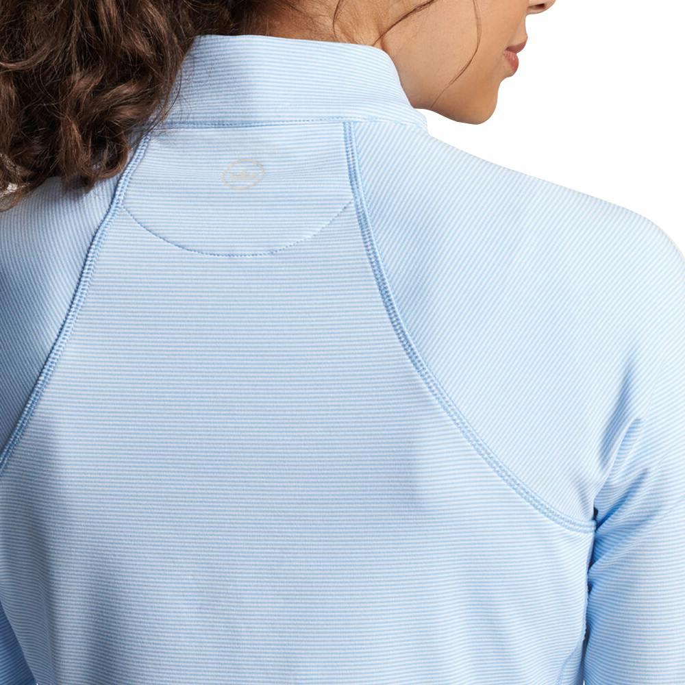 A lightweight, performance-ready women's quarter-zip pullover from Peter Millar, the Sugar Stripe Raglan Perth Quarter-Zip is the perfect second layer for golf, travel, and everyday wear. Built from stretch jersey with four-way stretch, moisture-wicking and antimicrobial finishes, it moves with you, fights odor, and keeps you cool and protected with UPF 50+ sun protection. The mock collar and quarter-zip closure give easy temperature control, and the easy-care fabric is machine washable for low-maintenance style. *Customization is subject to approval from Peter Millar*