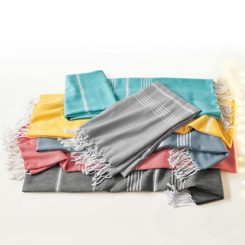 This Port Authority Cali Throw is a stylish and comfortable addition to your space. Made from cotton, this throw features a yarn-dyed stripe pattern that adds a touch of sophistication. The white tasseled ends provide a classic finishing touch. It's the cozy and substantial choice for warmth and style. Just add your logo or artwork and it's yours!