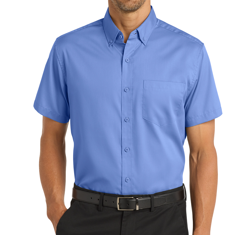 This 3.4-ounce shirt is made from a soft and durable 55% cotton, 45% polyester blend for everyday comfort. The button-down collar and dyed-to-match buttons give it a clean, polished look. Back shoulder pleats provide ease of movement and a tailored finish. A left chest pocket adds both function and classic style.