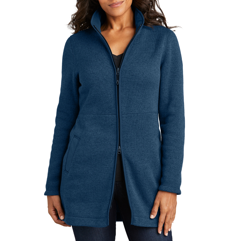 Polished like a sweater, warm like fleece—the Port Authority Women’s Arc Sweater Fleece Long Jacket is the perfect blend of style and comfort. Designed with a flattering feminine fit and soft, heathered texture, it delivers a professional look with cozy, all-day wearability. Ideal for layering or wearing on its own, this versatile jacket transitions effortlessly from the office to events and everyday outings. Finished with an anti-pill surface and secure zippered pockets, it’s a dependable choice for corporate uniforms, team apparel, and custom-branded promotions.