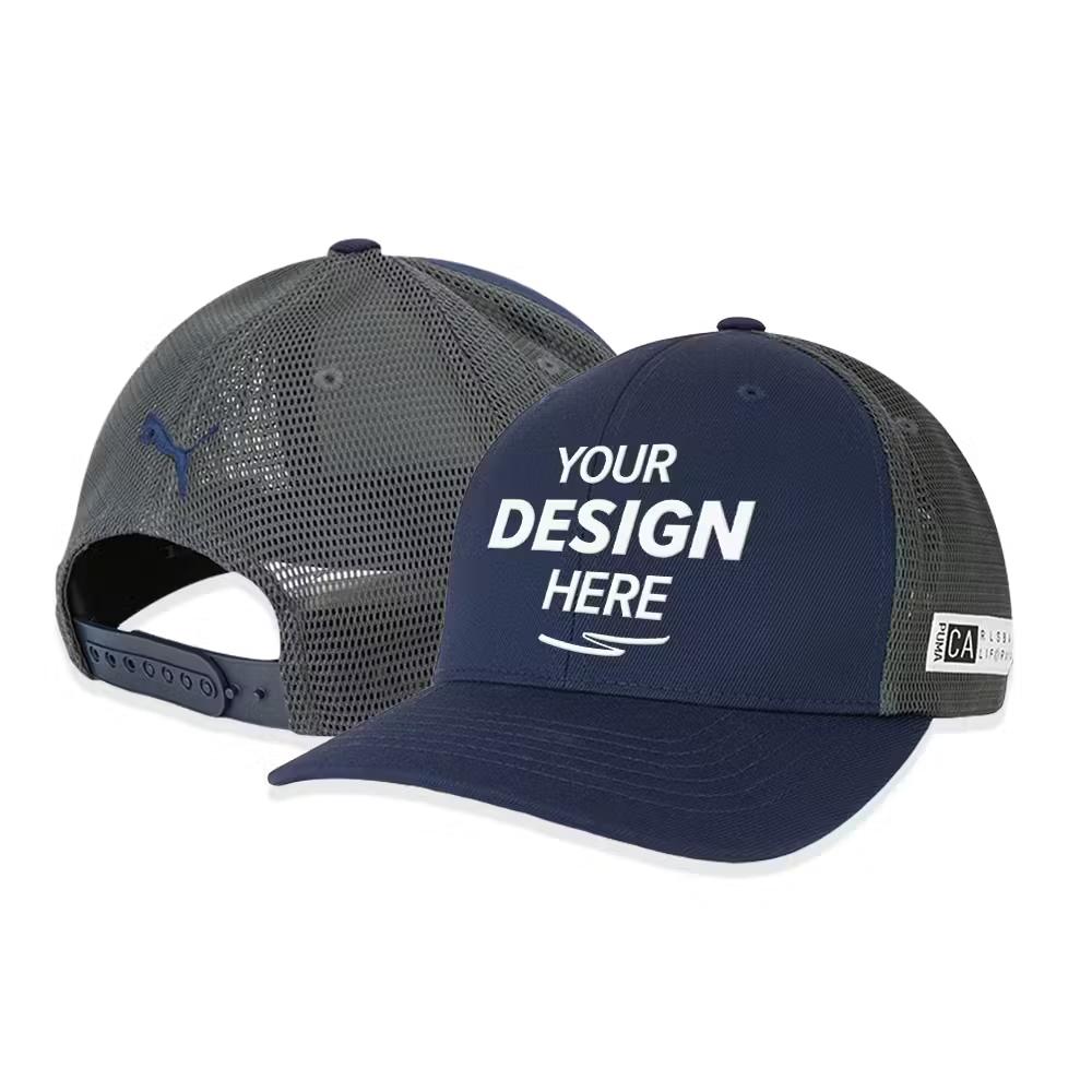 The Puma 110 Snapback Trucker Cap from Puma Golf is built for the course — breathable polyester trucker panels and moisture-wicking fabric keep you cool and dry on every round. A performance sweatband, slight-curved 6-panel profile and patented 110 Flexfit® snapback provide a comfortable, adjustable fit, finished with the embroidered Puma cat logo. Add your logo for golf tournaments, corporate giveaways or team apparel and turn this cap into an eye-catching promo.