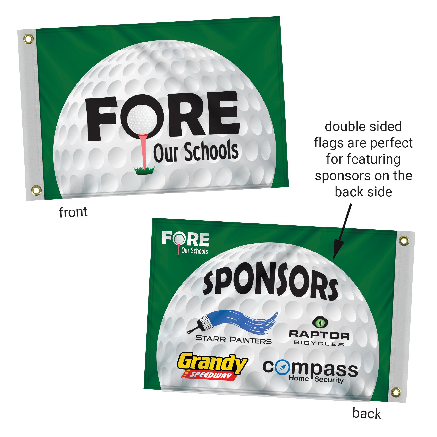 Bring bold, professional flair to the course with this 14" x 20" double-sided golf flag. Made from durable knit polyester, it features a full-color digital imprint on both sides for clear, vivid visibility. Each flag is finished with a white canvas heading and sturdy brass grommets, combining traditional style with long-lasting performance.