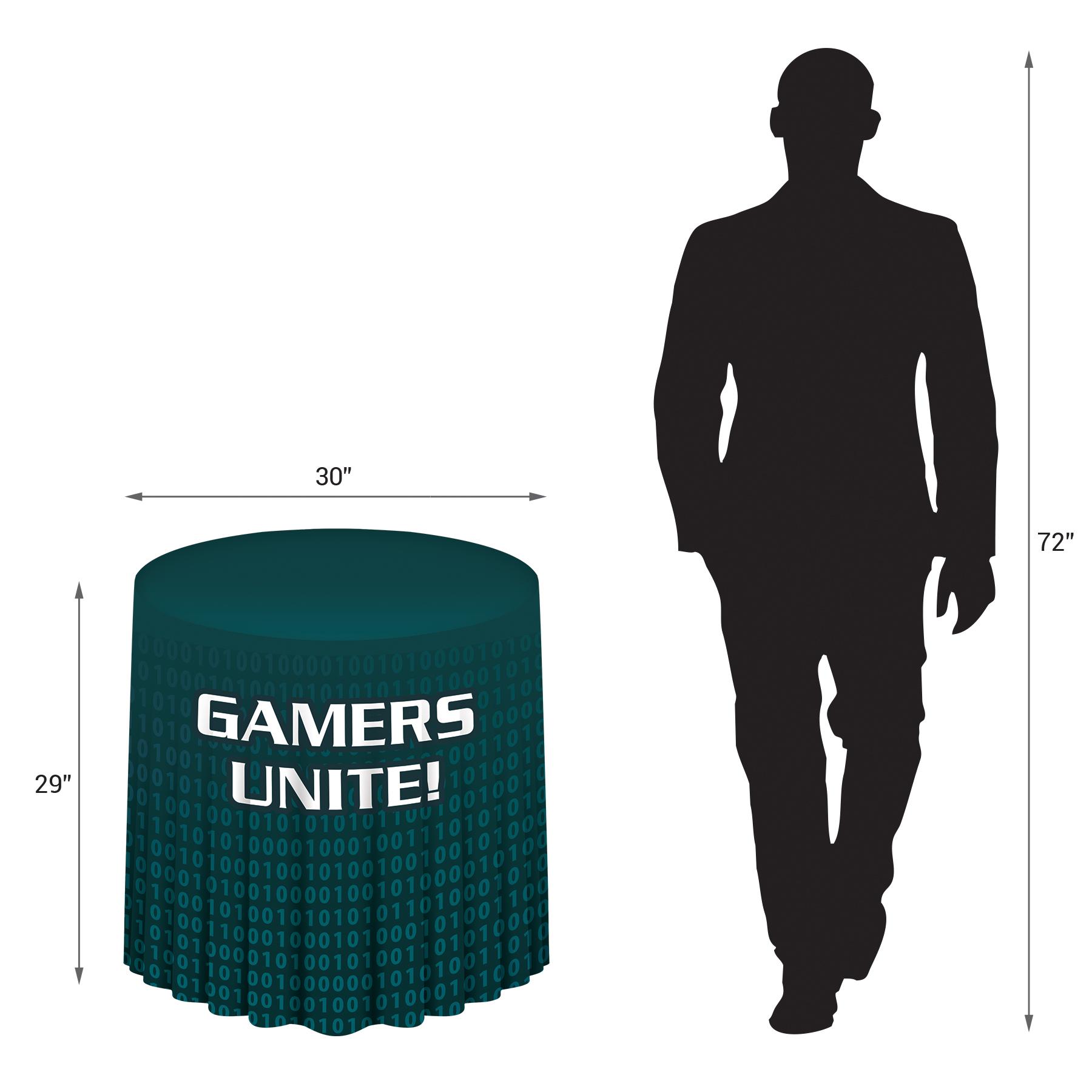 Elevate your event setup with a sleek and stylish 30" Round Customized Table Throw—designed to make your brand the center of attention. Made from premium display polyester, this cover starts with a crisp white base and can be fully customized with your logo, background color, and bold graphics. The result? A clean, professional presentation that instantly enhances your booth, display table, or promotional space. Be aware the soft material may pleat, keep important artwork on the top surface for the best visual impact.