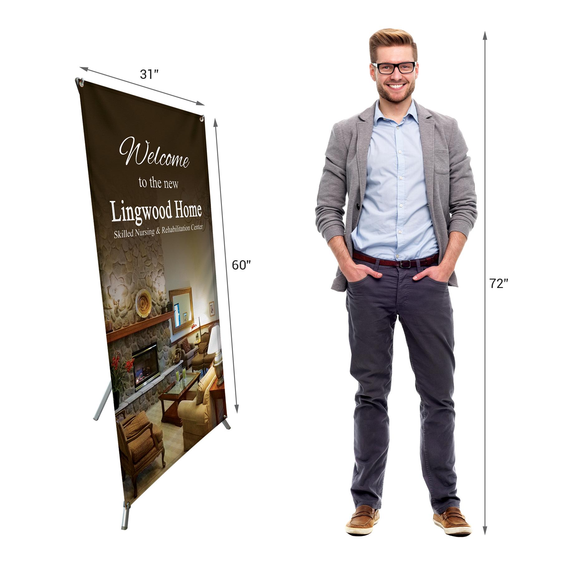 Make setup fast and visibility strong with the 60" × 31" X-Banner Kit, a lightweight display designed for easy transport and professional impact. Built with a durable aluminum frame and premium display polyester, it delivers crisp graphics and reliable performance event after event. The tool-free assembly takes just minutes, and the entire system packs neatly into the included black carrying case for effortless travel. Ideal for trade shows, retail spaces, POP displays, and promotional events, this X-banner kit offers a clean, polished look that’s always ready when you are.