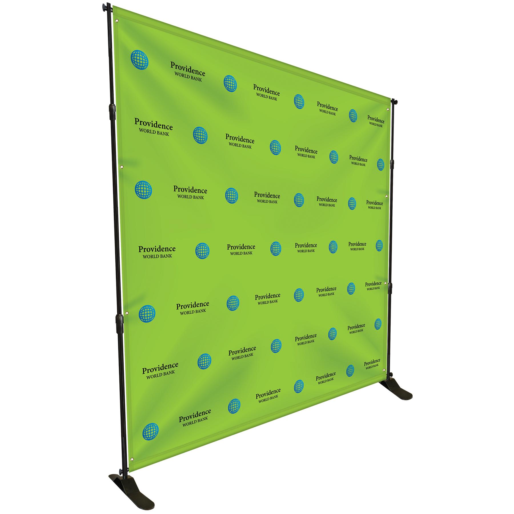 Get the essentials and put your message on display. This kit includes a sturdy black aluminum telescoping banner frame and an 8' x 8' single-sided premium display polyester custom banner. It's easy to set up and the kit includes a black carrying bag for easy transport. The banner frame telescopes to a maximum of 8' x 8'. Add your logo with state-of-the-art digital printing with no limitations on colors and is most commonly finished with pole sleeves on top and bottom. Standard finishing also includes 4 grommets on the left and right side for additional support at no additional cost (fastenings not included). Minimum banner width - 4'3". Allen wrench and bolts are included. Charges and availability will be based on quantity size and requested delivery date.
