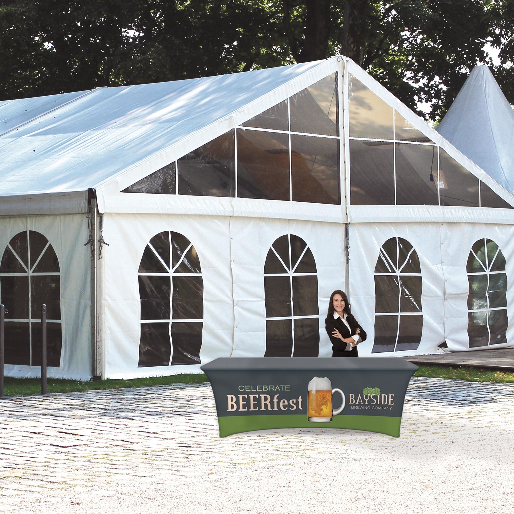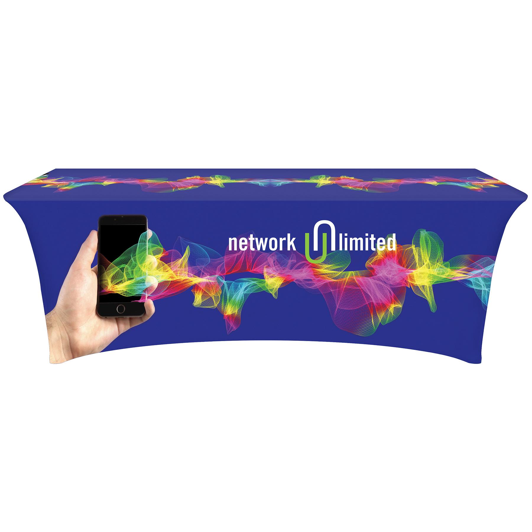 Create something ideal for any promotional display with this 8' digitally printed stretch table cover! With the unique customizable table cover, provide a sleek look and draw crowds to your table at conventions, conferences, and trade shows. These lightweight, form fitting stretch table covers are ideal for displaying your logo or message clearly and vividly over the entire table cover. Our digital printing process allows us to print a wide array of PMS colors at no extra cost. Add your custom imprint to complete the look today! Fits 8' tables (96" length, 30" width, 29" height).