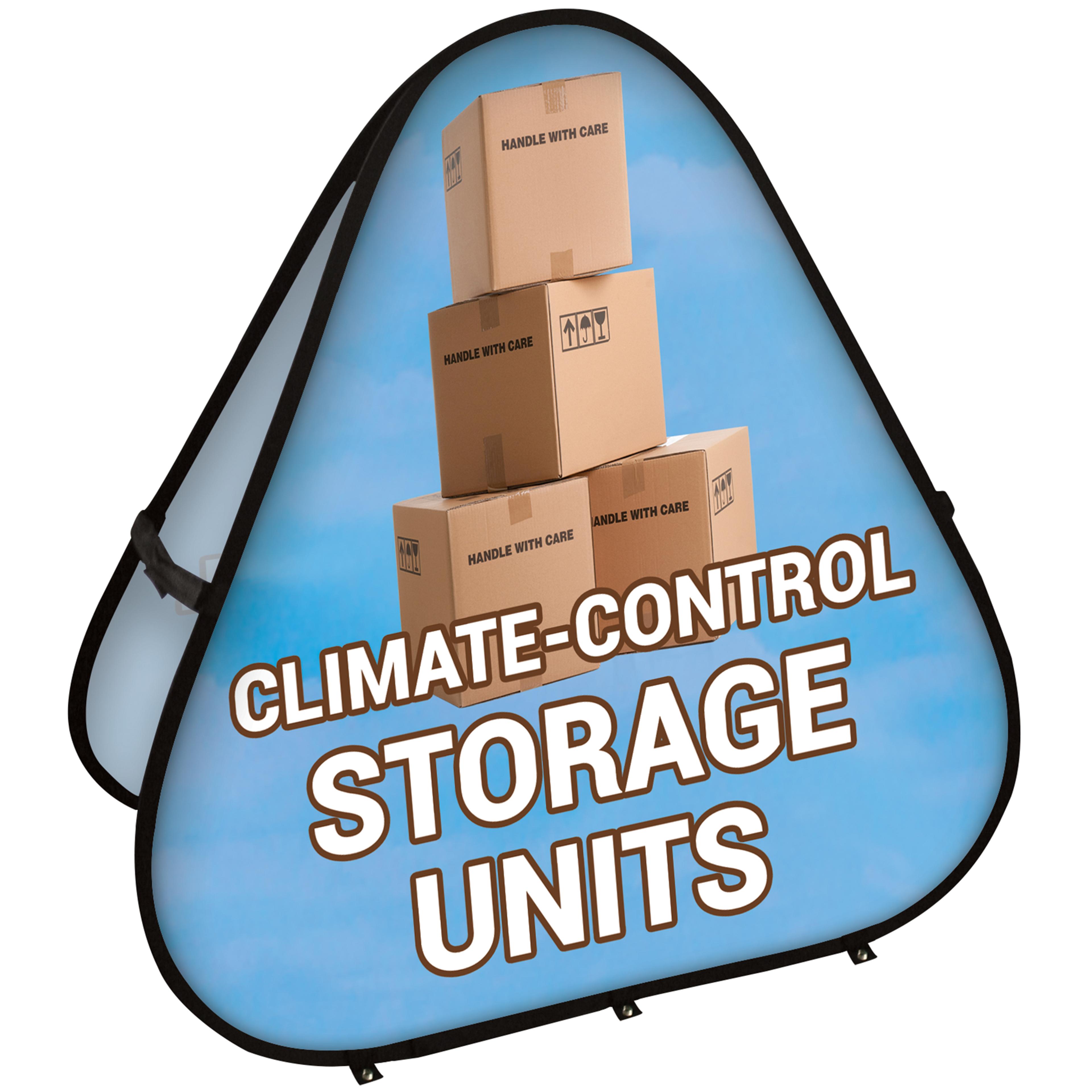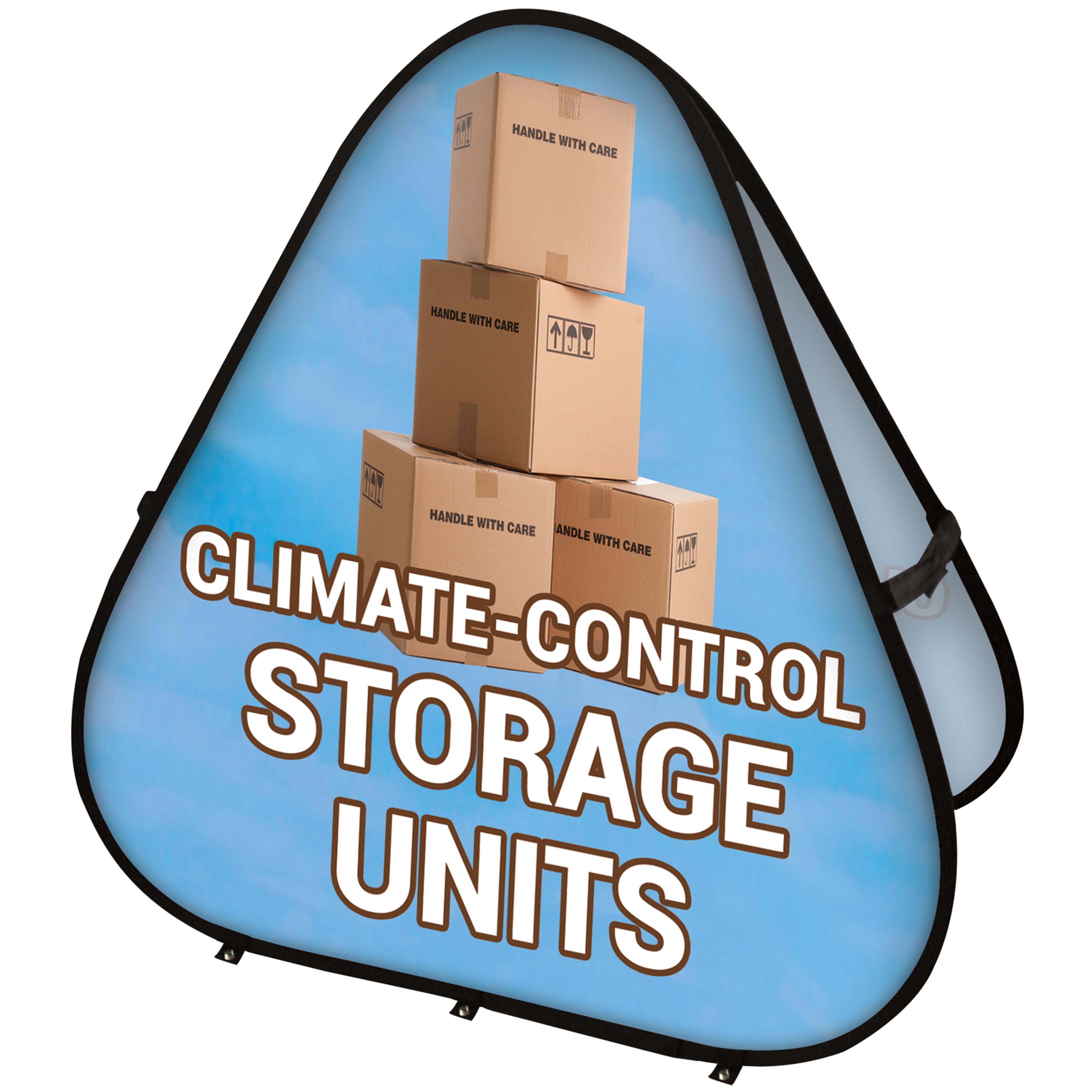 Turn any space into a high-impact branding opportunity with this striking 59" triangular pop-up banner. Its bold shape and generous display area instantly draw attention, making it a powerful choice for promoting your message at indoor or outdoor events. Crafted from premium display polyester and supported by a durable steel A-frame, it’s built to withstand busy crowds, changing weather, and constant setup and teardown—while still remaining lightweight and easy to carry.