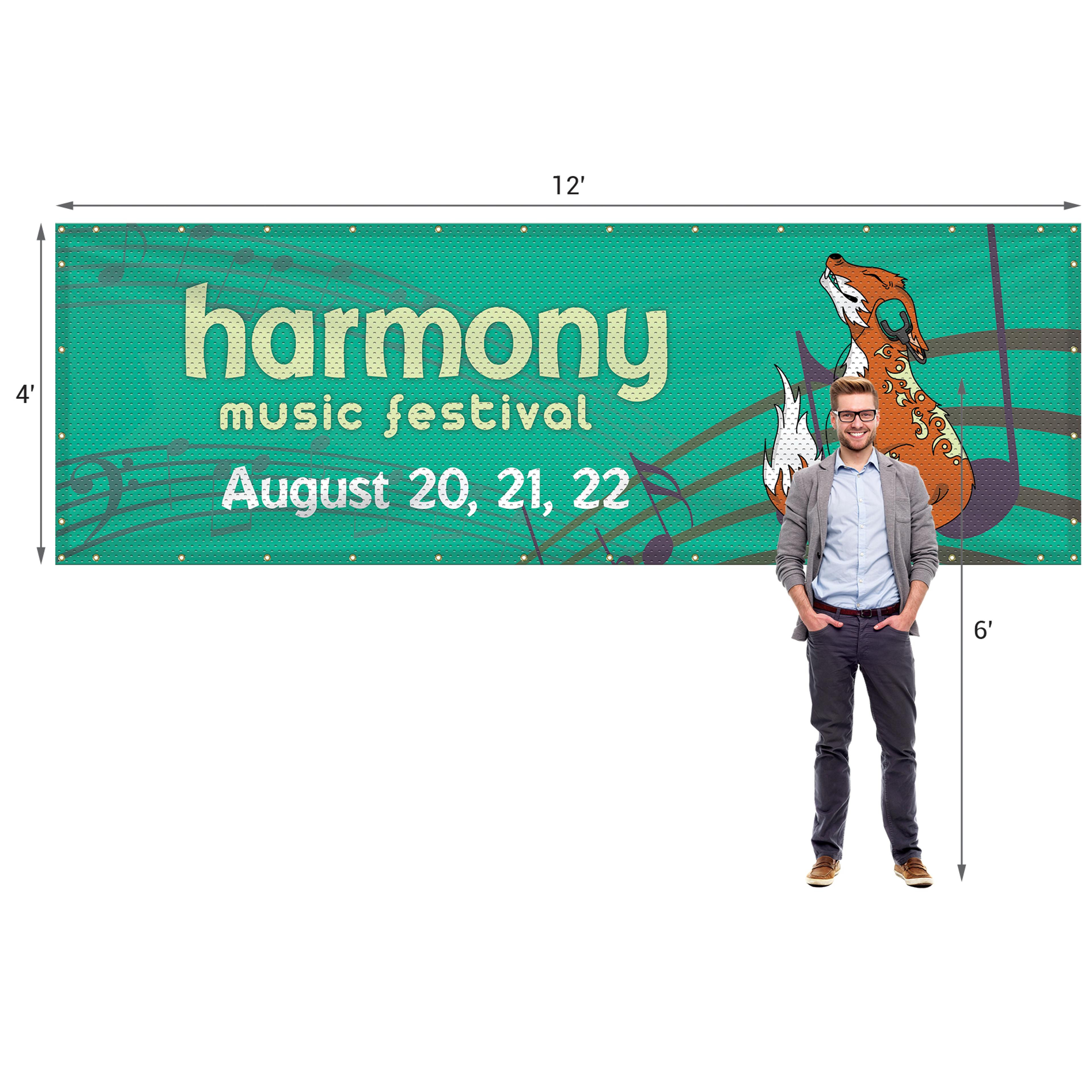 Turn any fence or barrier into a bold display with this 4' x 12' polyester mesh banner. Designed for vibrant, full-color visibility and lightweight durability, it’s an easy way to make your message stand out outdoors. Due to the nature of mesh fabric, banner strength may decline over time when exposed to extreme heat, cold, or wind, making it best suited for short-term outdoor use. Inspect the surface before installation, as sharp edges can damage the fabric. This banner is designed to be taut against the desired surface; please use all of the provided grommets with zip ties.