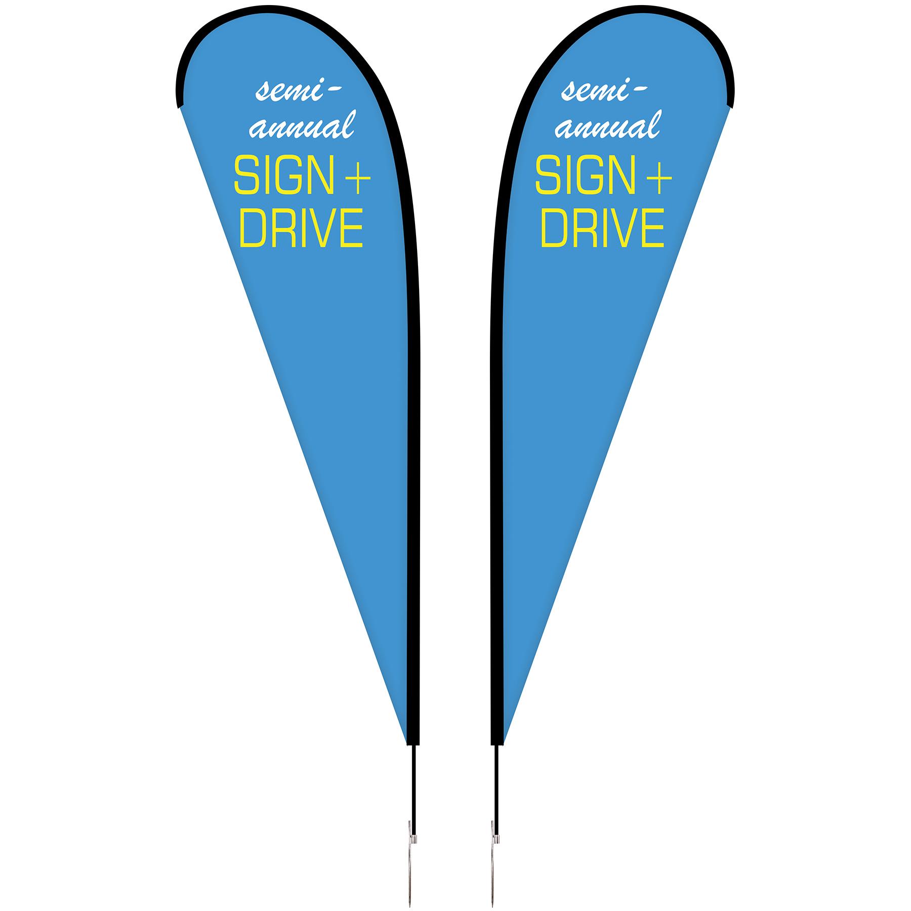 Built for lasting visibility, this 10' double-sided portable teardrop banner (actual display height 12') ensures your message is seen from every angle. Crafted from durable knitted polyester, this item features a full-color digital imprint on both sides, delivering bold, vibrant graphics that make a strong impression indoors or out.