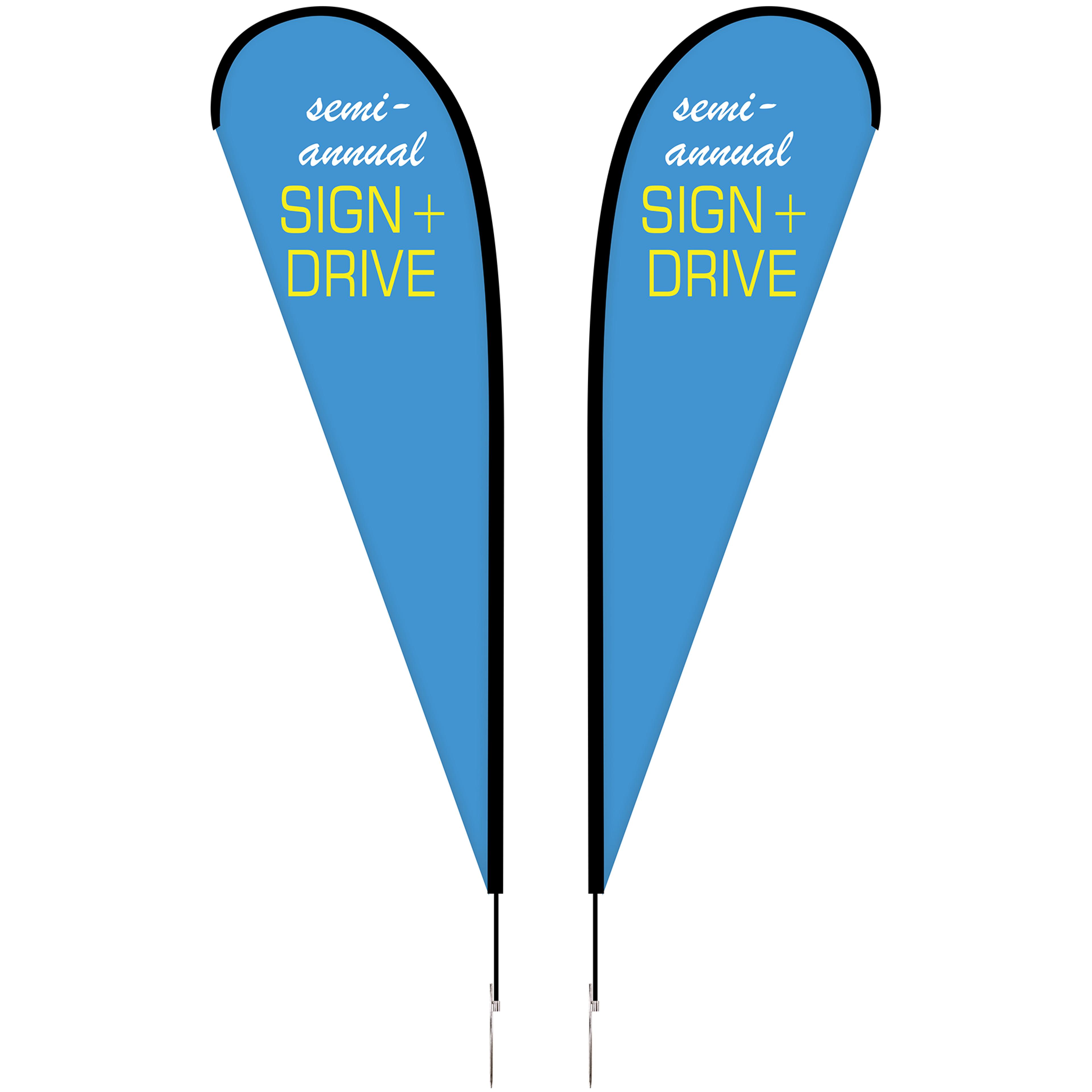 Built for lasting visibility, this 10' double-sided portable teardrop banner (actual display height 12') ensures your message is seen from every angle. Crafted from durable knitted polyester, this item features a full-color digital imprint on both sides, delivering bold, vibrant graphics that make a strong impression indoors or out.